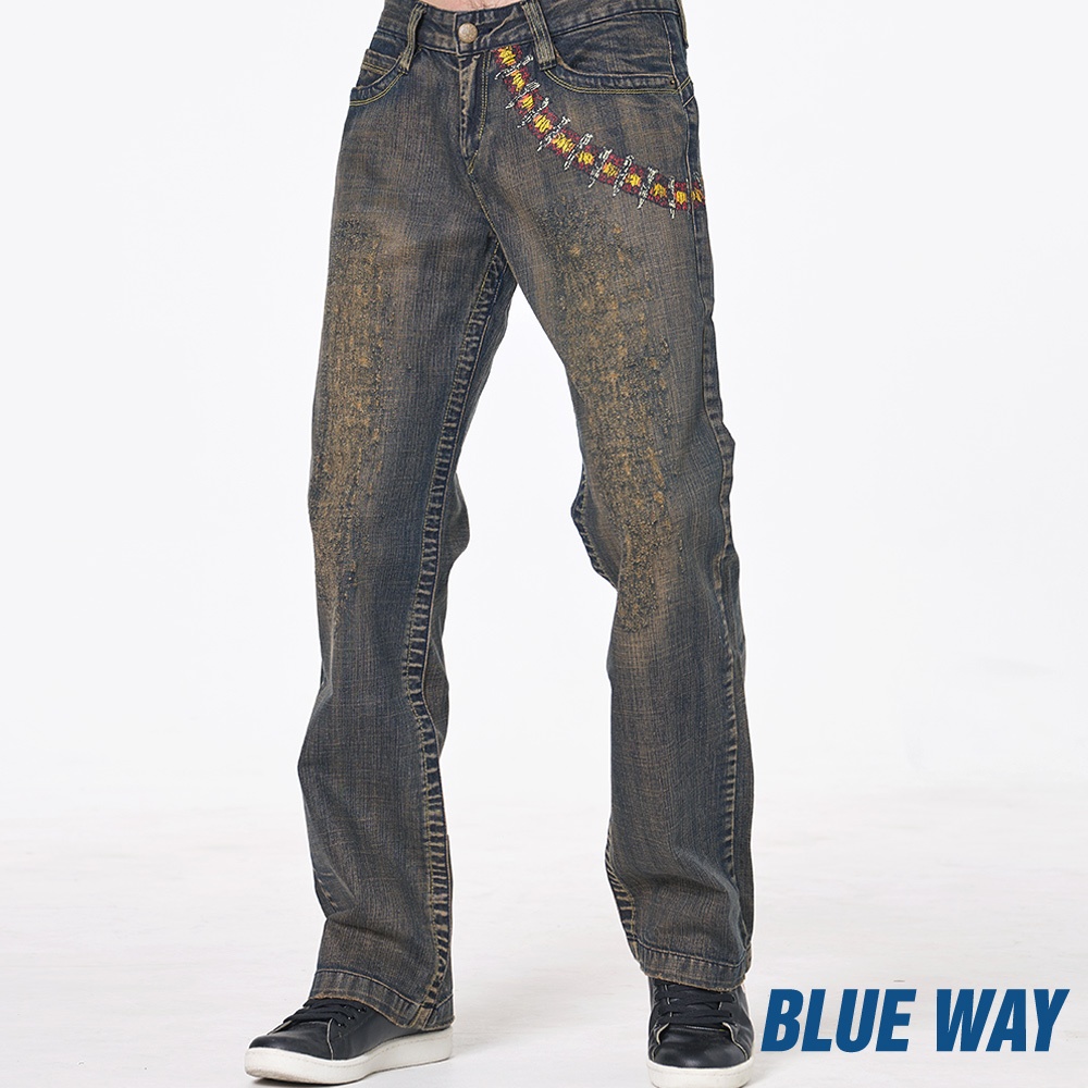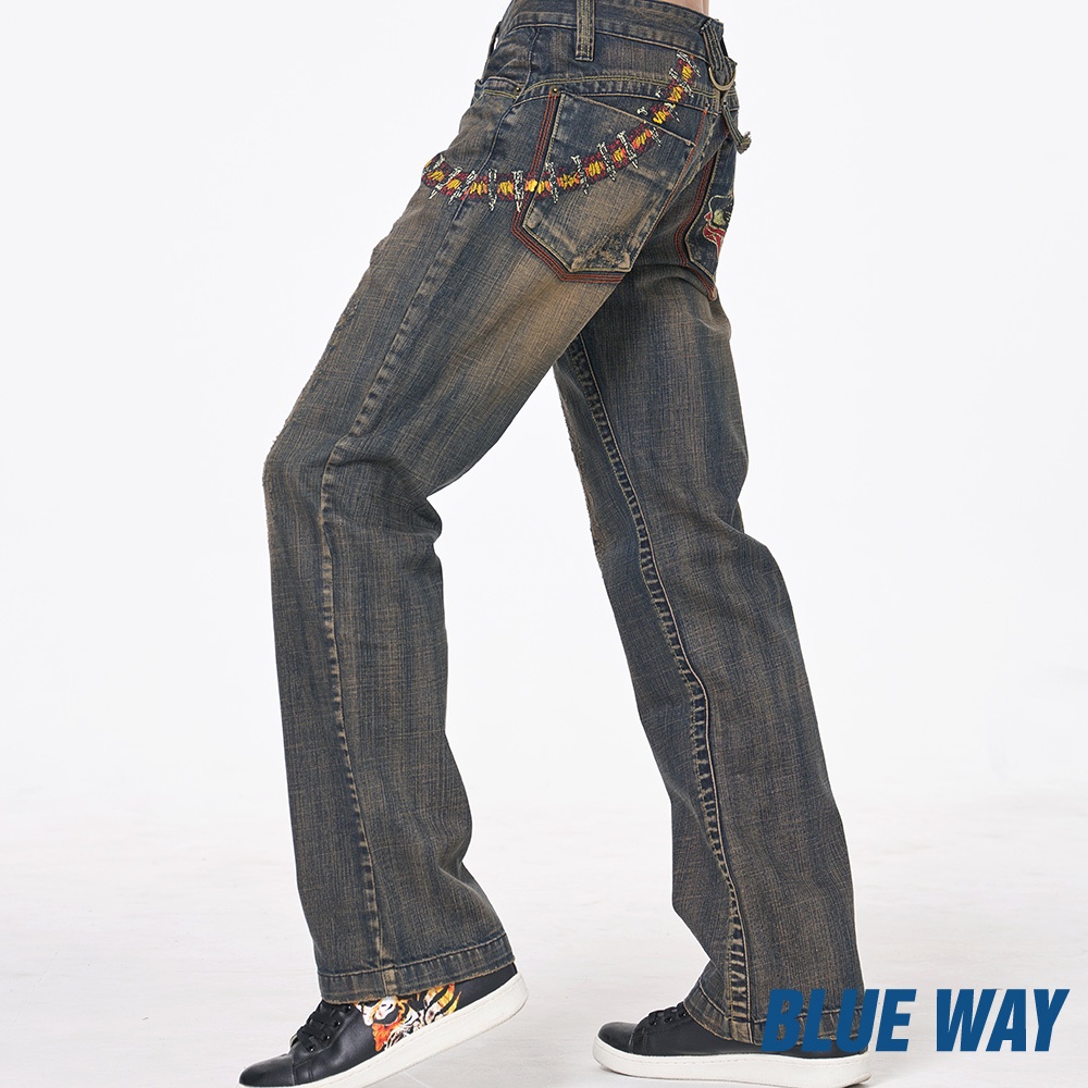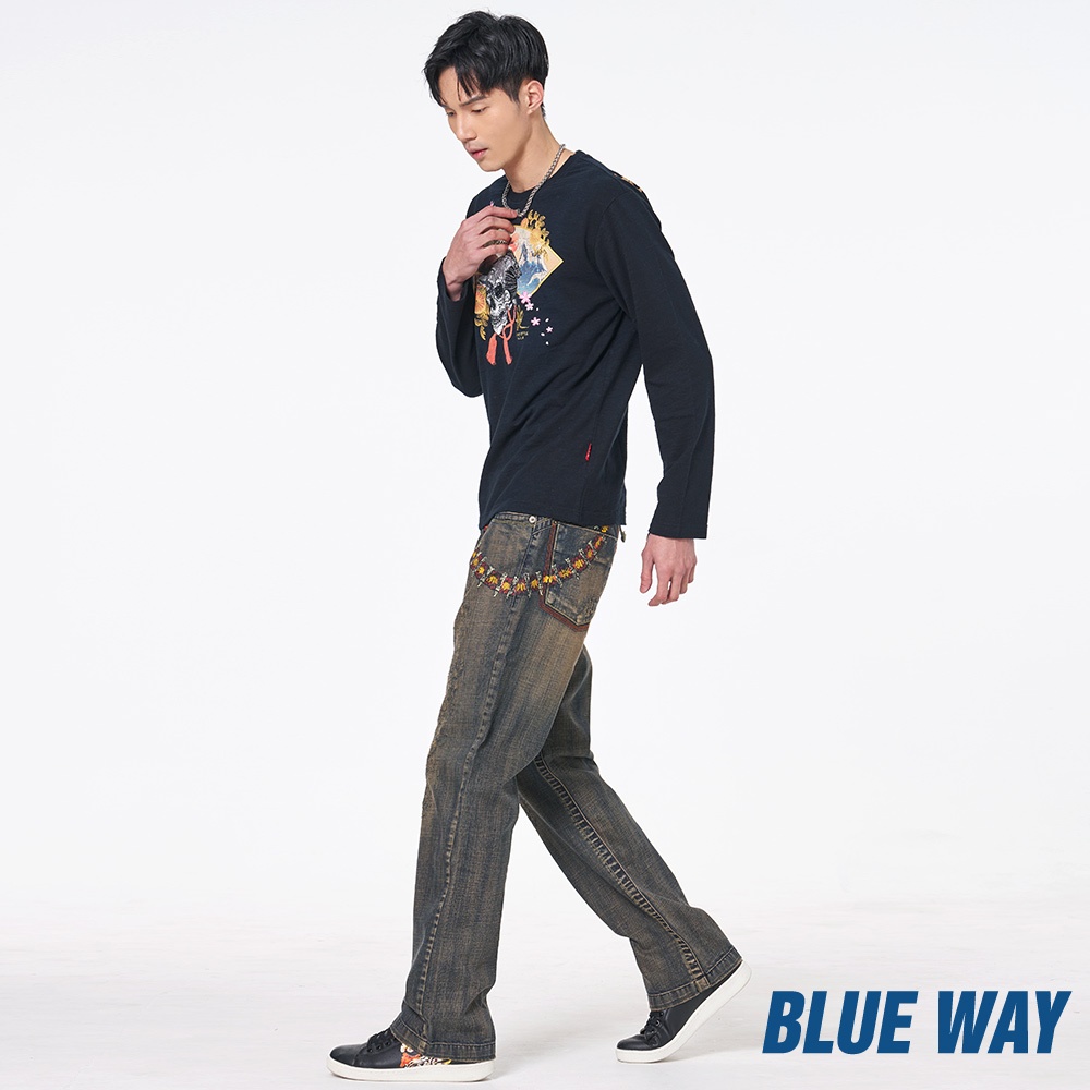 BLUE WAY – 男款 骷顱子彈丹寧直筒褲M|L|XLBLUE WAY官方旗艦店