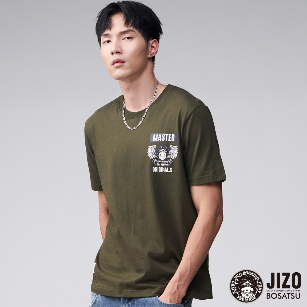 BLUE WAY 地藏小王 – 男款 軍事仿貼標短TEE(軍綠)