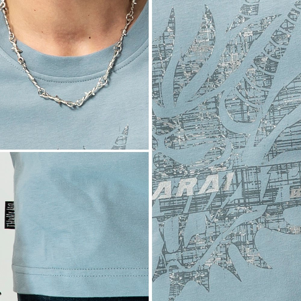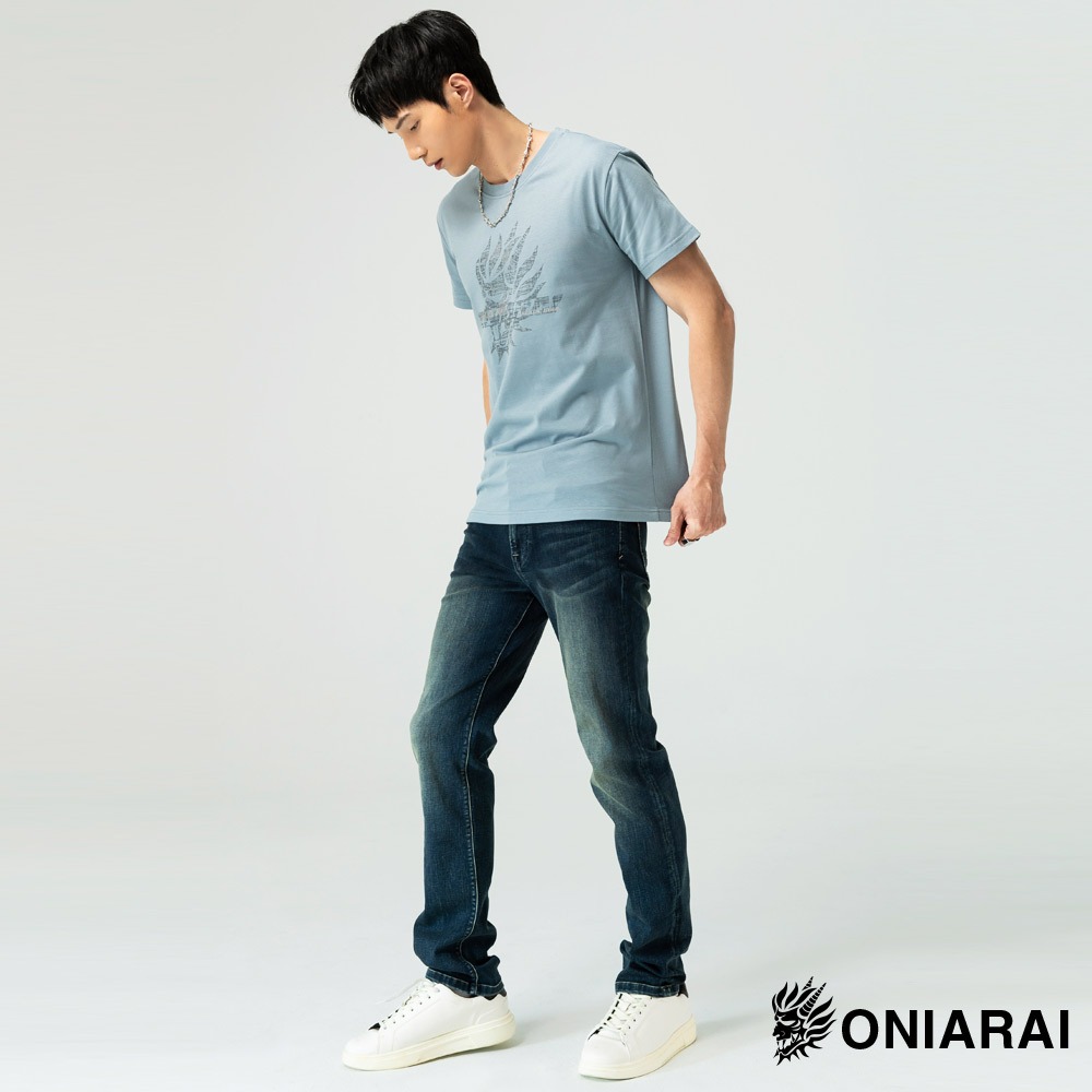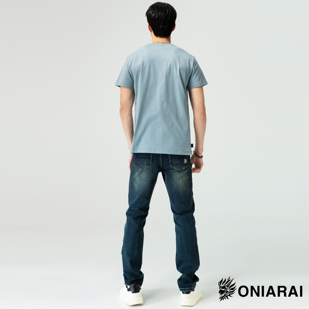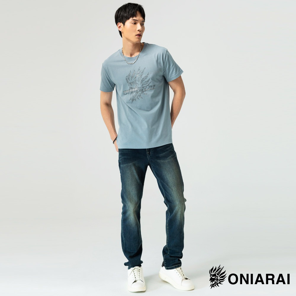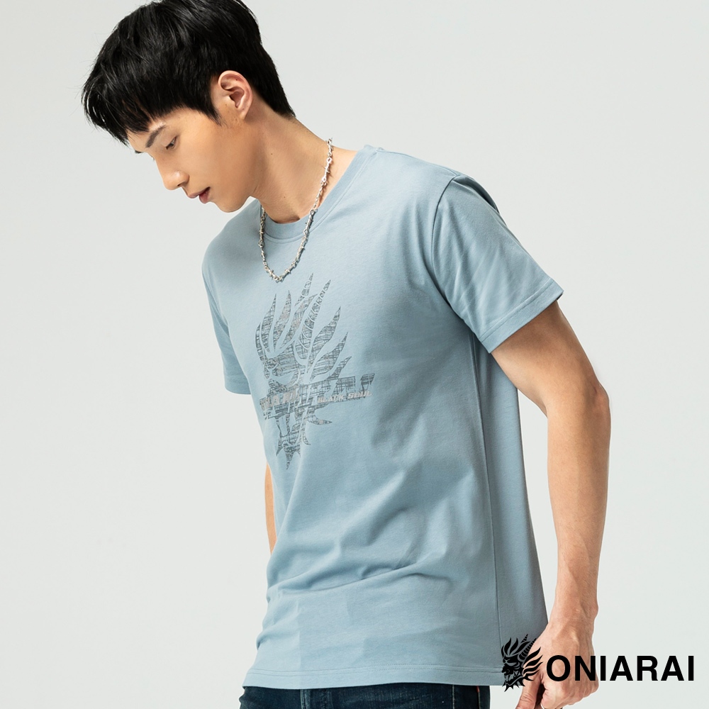 BLUE WAY 鬼洗 ONIARAI – 男款 潮流鬼頭文字短TEE(灰藍)L|XL|3L|MT-ShirtsBLUE WAY官方旗艦店