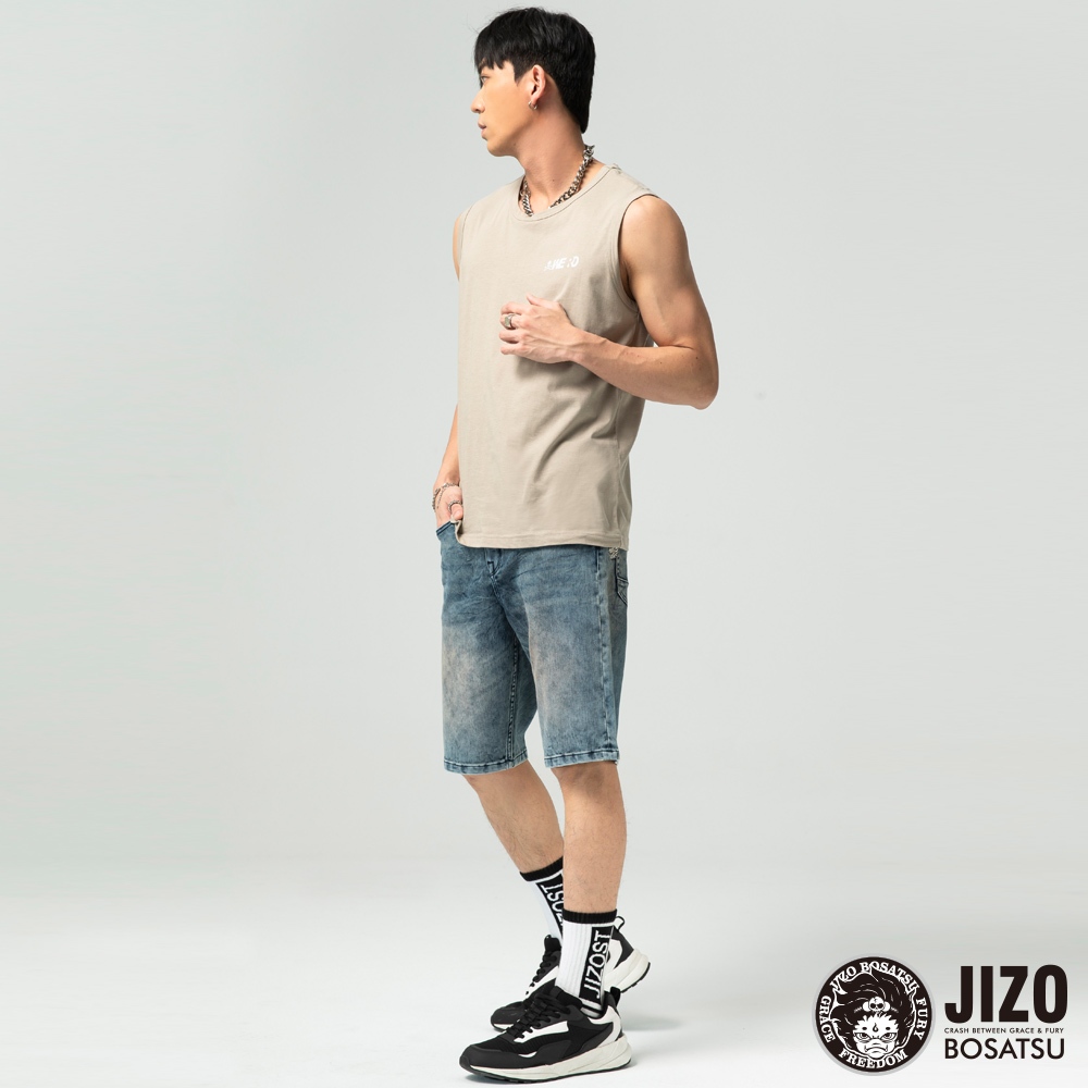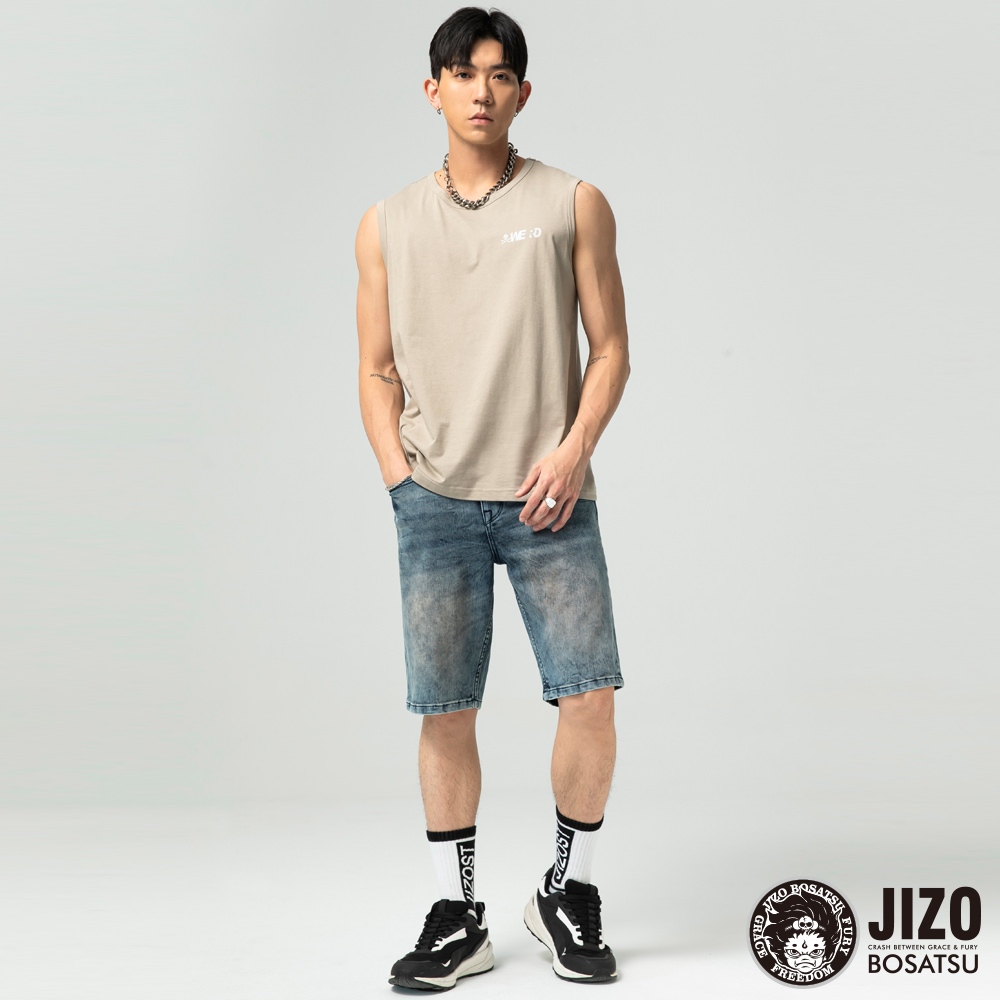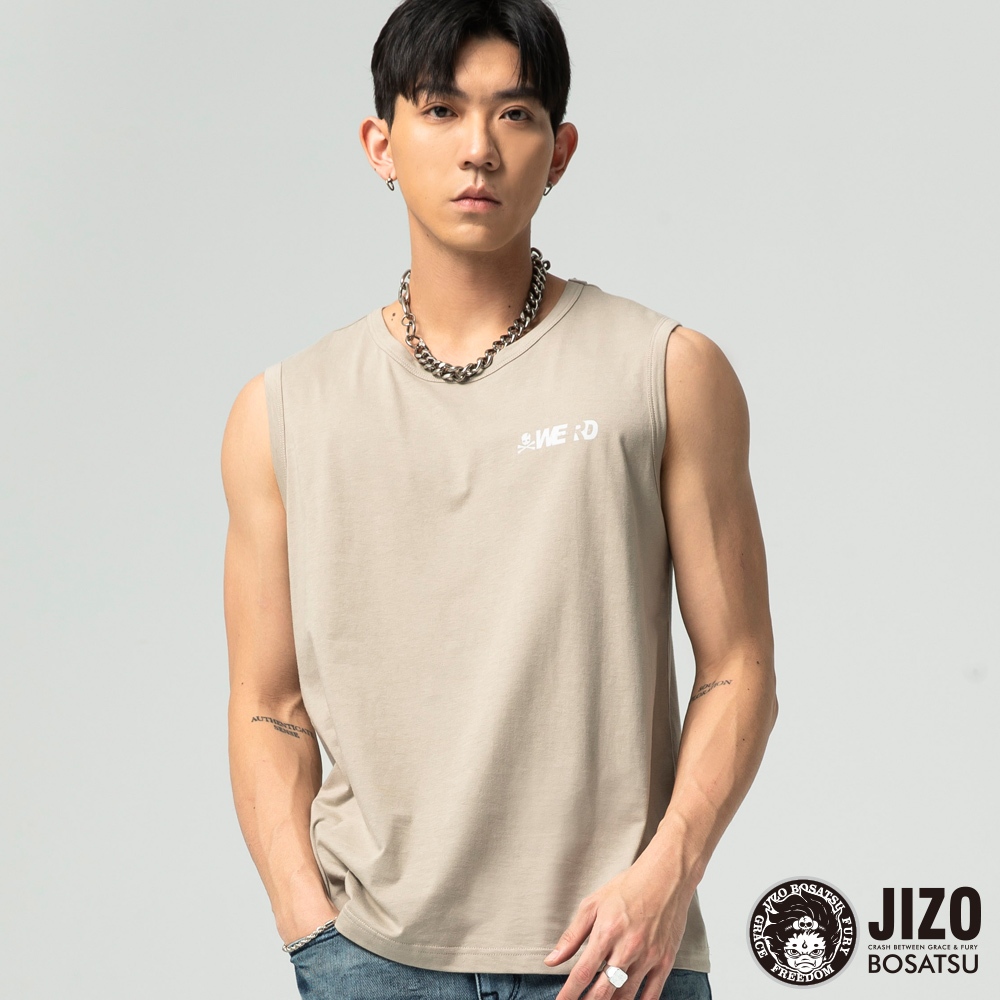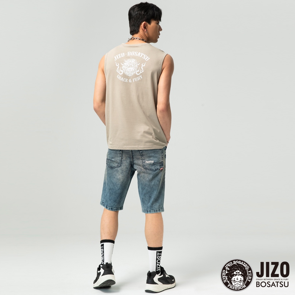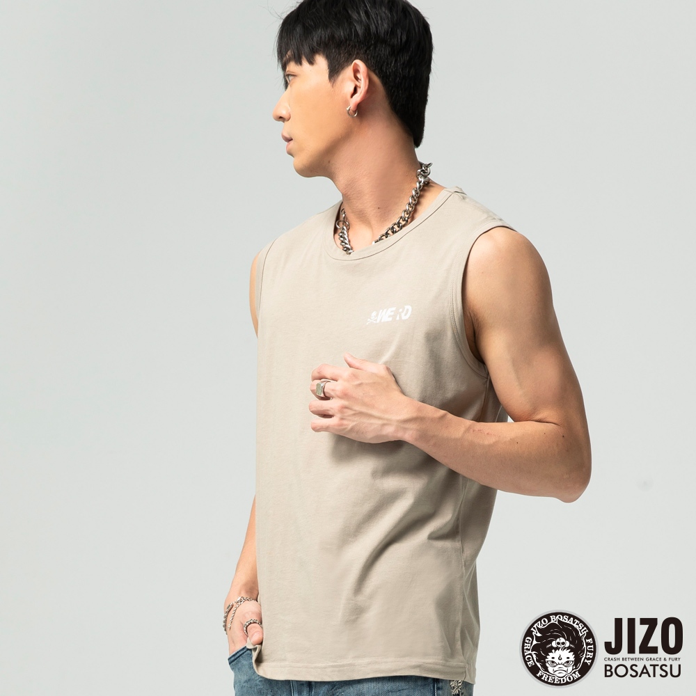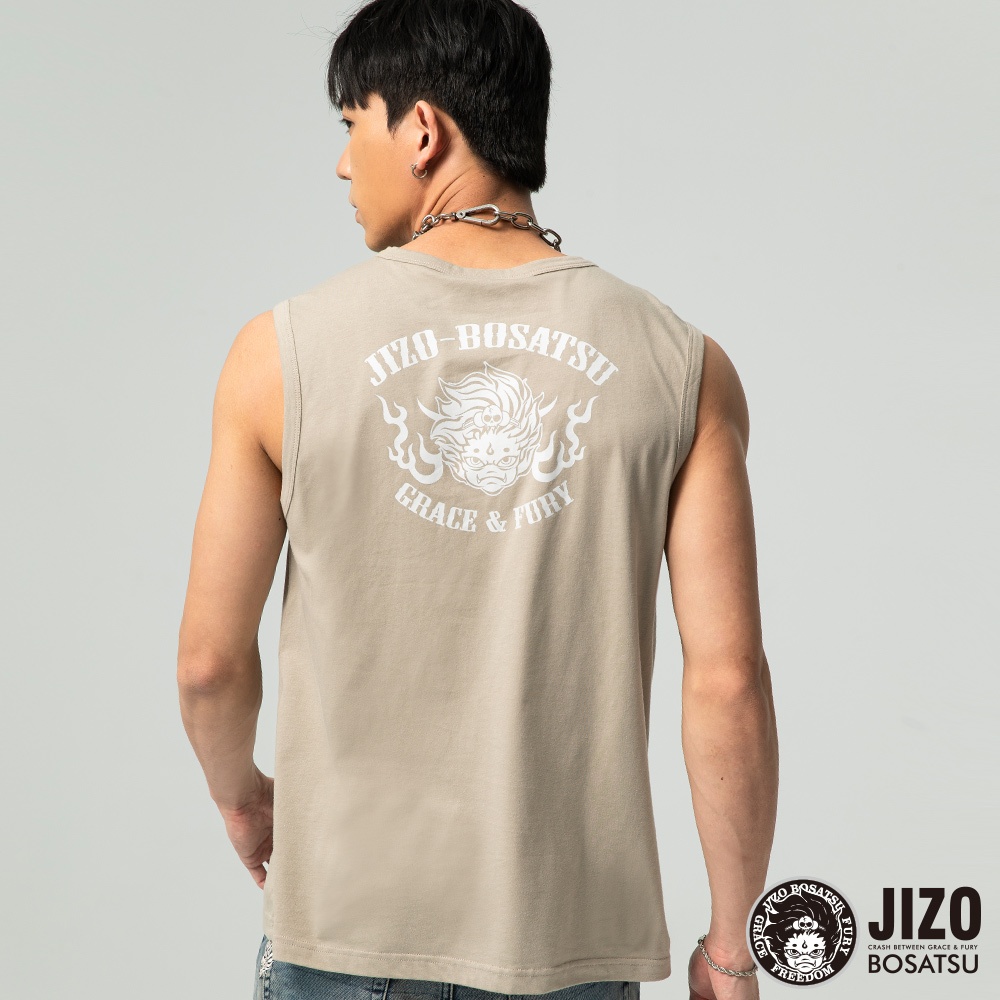 BLUE WAY 地藏小王 – 男款 火閻LOGO純棉背心(卡其灰)L|XL|3L|MVestsBLUE WAY官方旗艦店