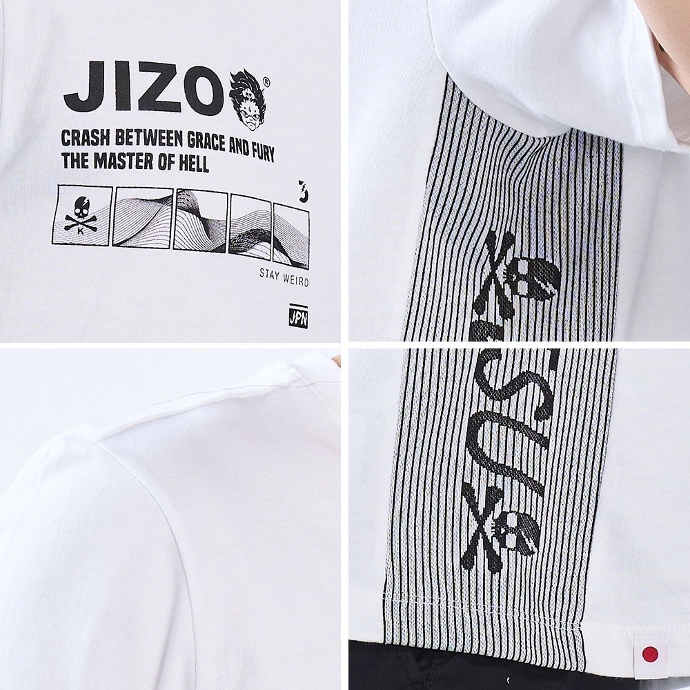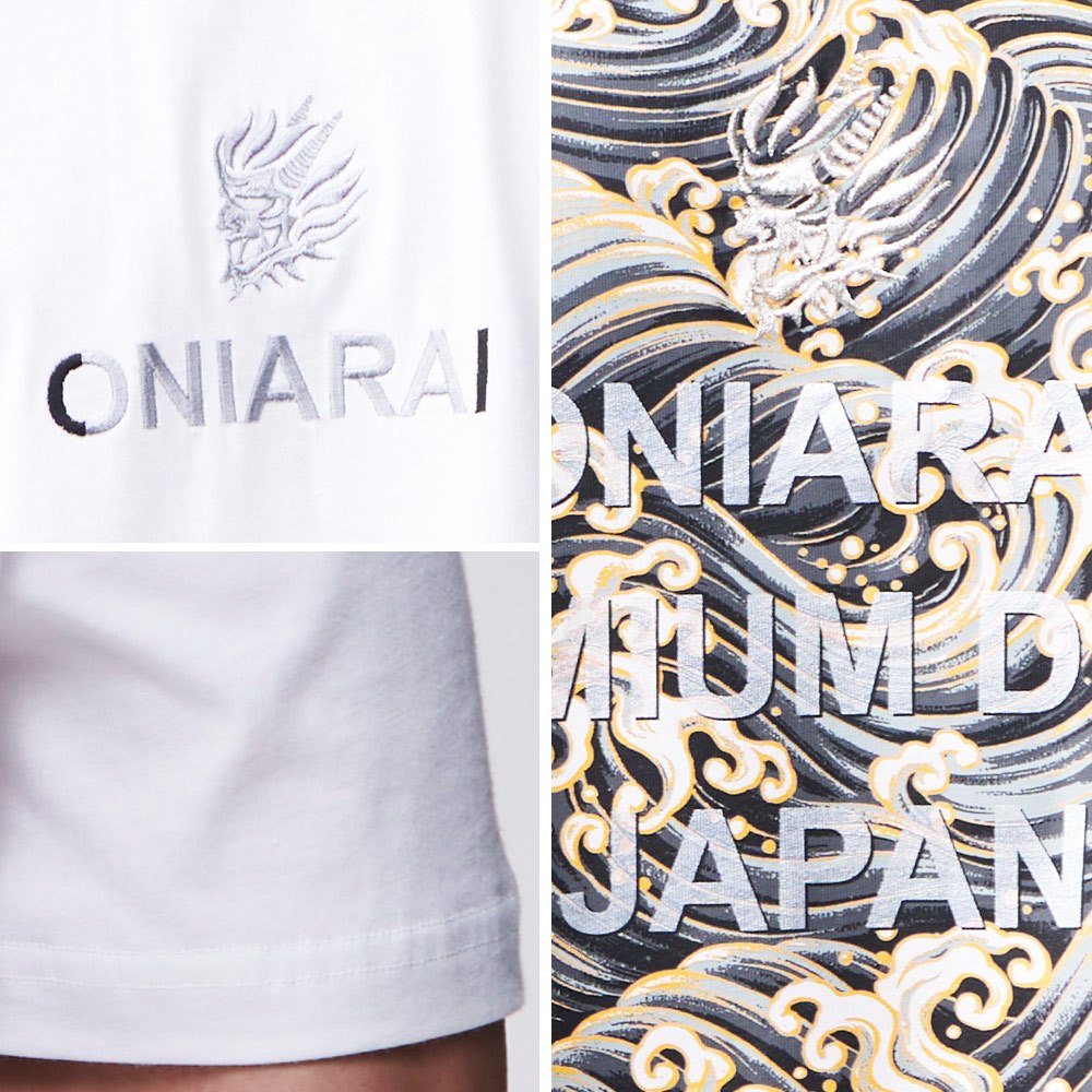 BLUE WAY 鬼洗 ONIARAI – 男款 經典海浪文字鬼頭落肩短TEE(白)