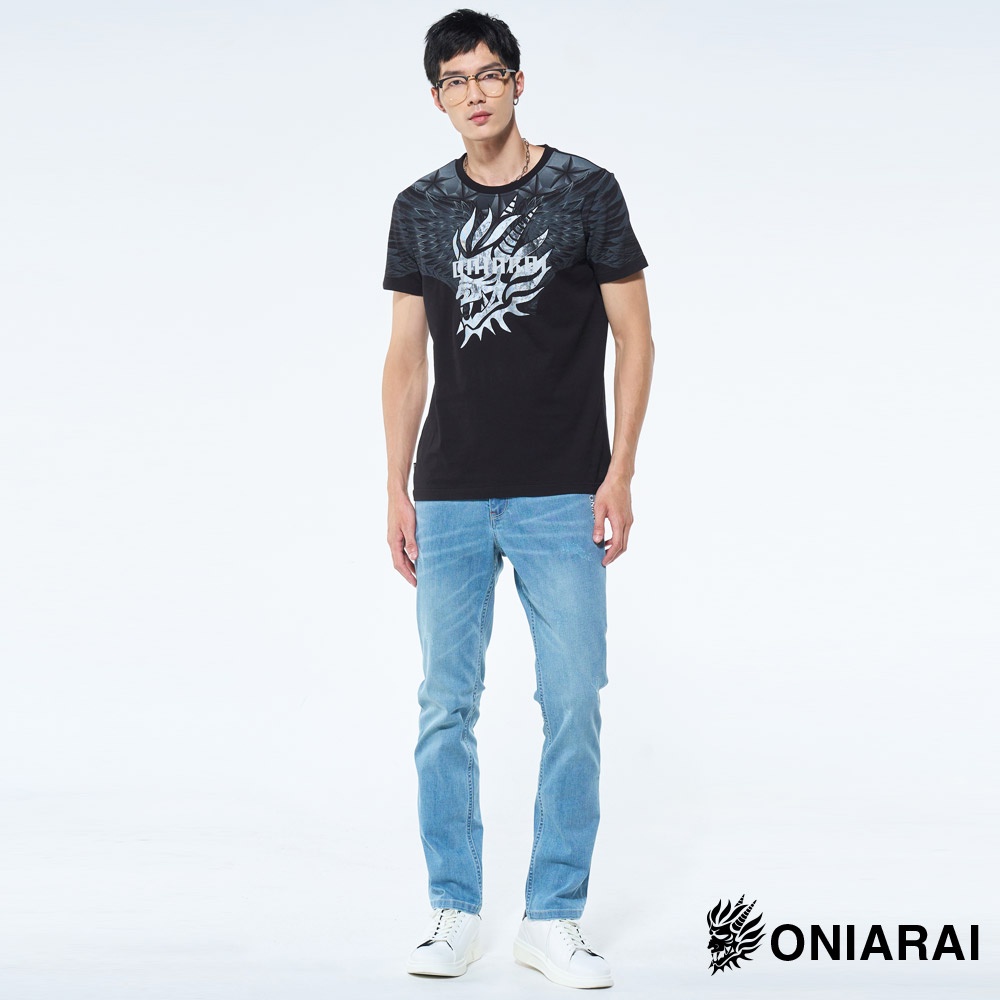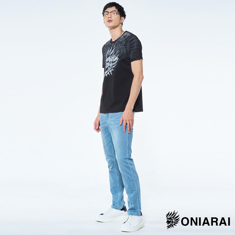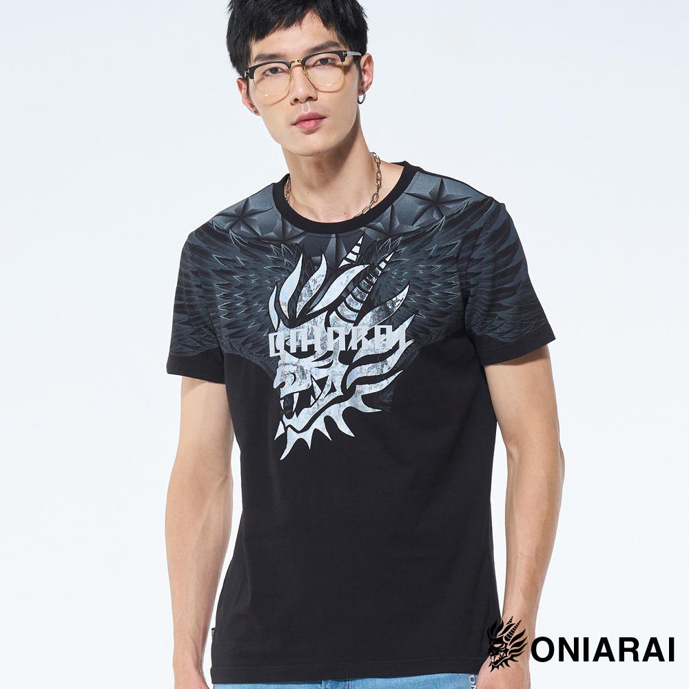BLUE WAY 鬼洗 ONIARAI-男款 和藝術墨感翅膀側鬼短TEE(黑)3L|M|L|XLT-ShirtsBLUE WAY官方旗艦店