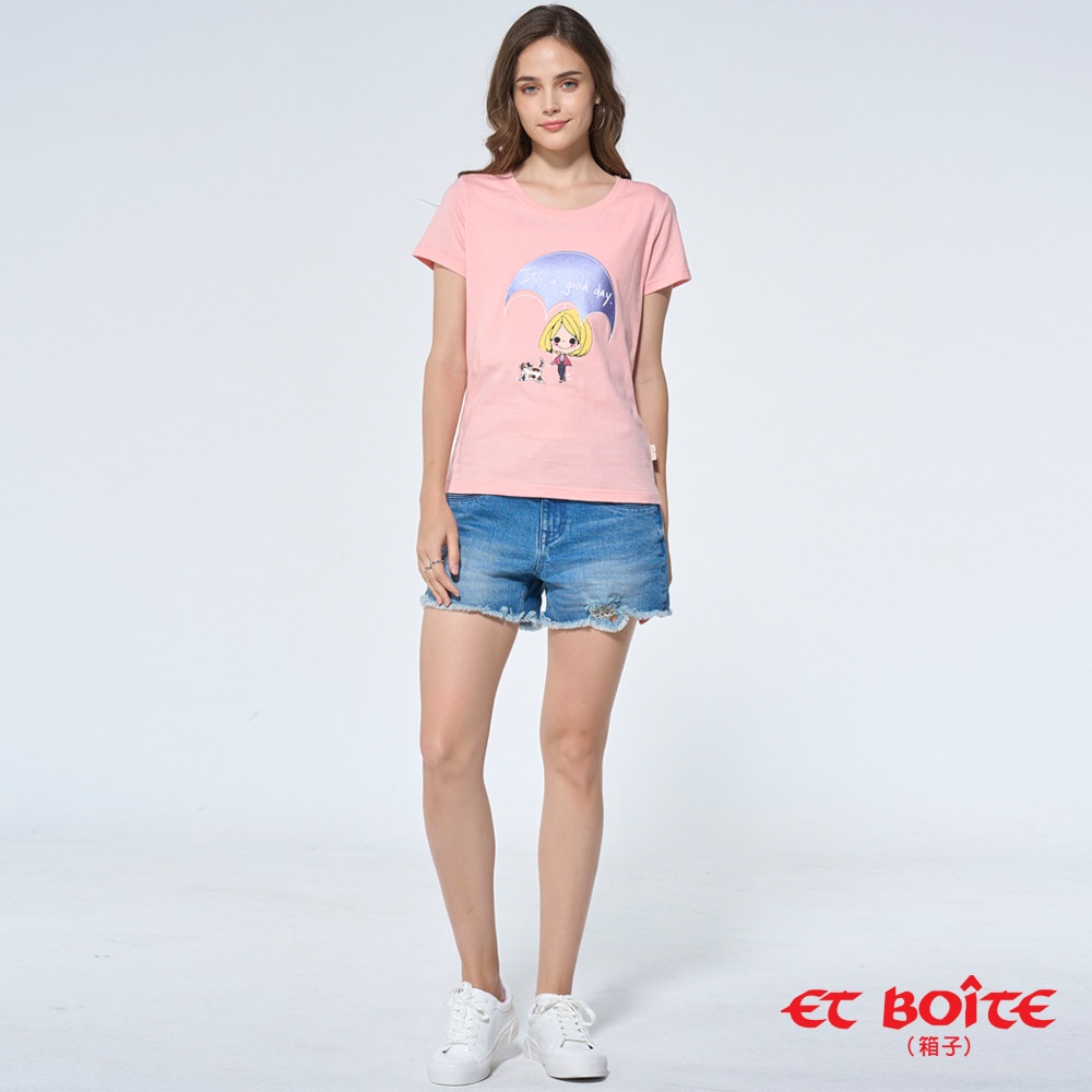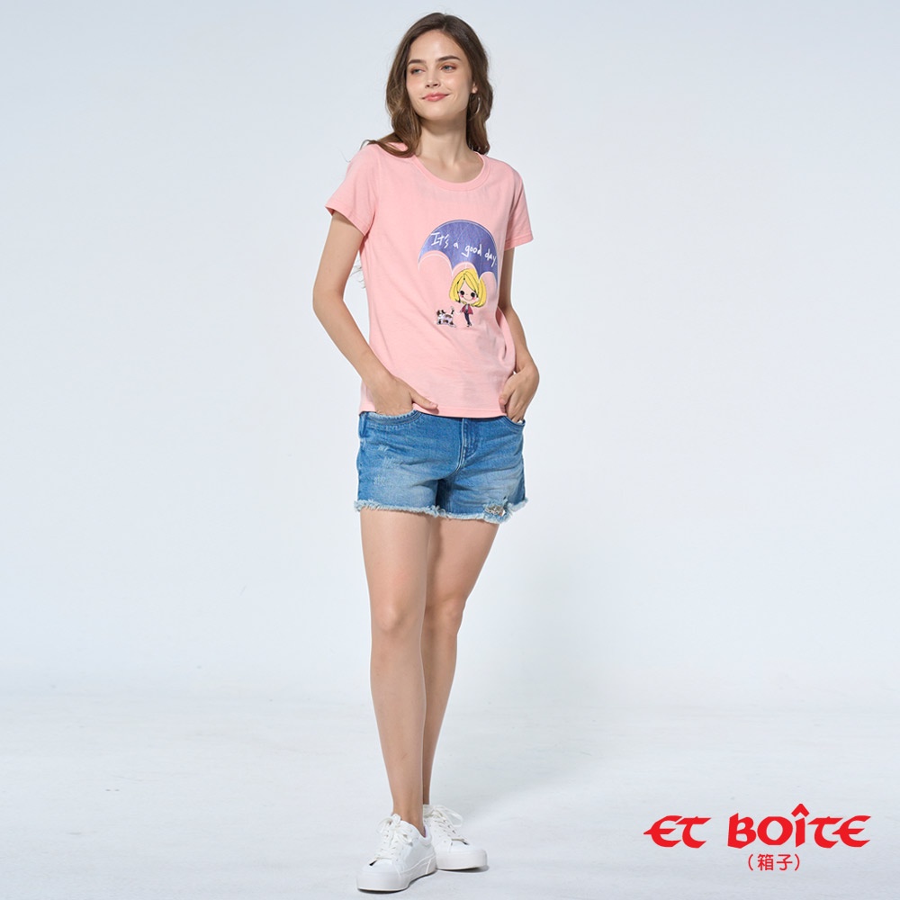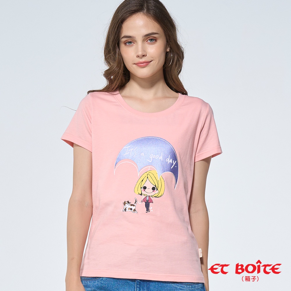 BLUE WAY 箱子 ET BOiTE-女款 有DORA下雨天也是好日印花短TEE(粉)S|M|LT-shirtsBLUE WAY官方旗艦店