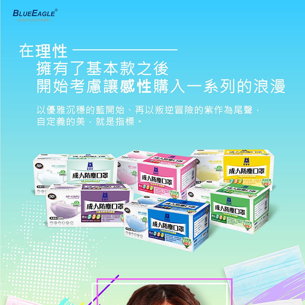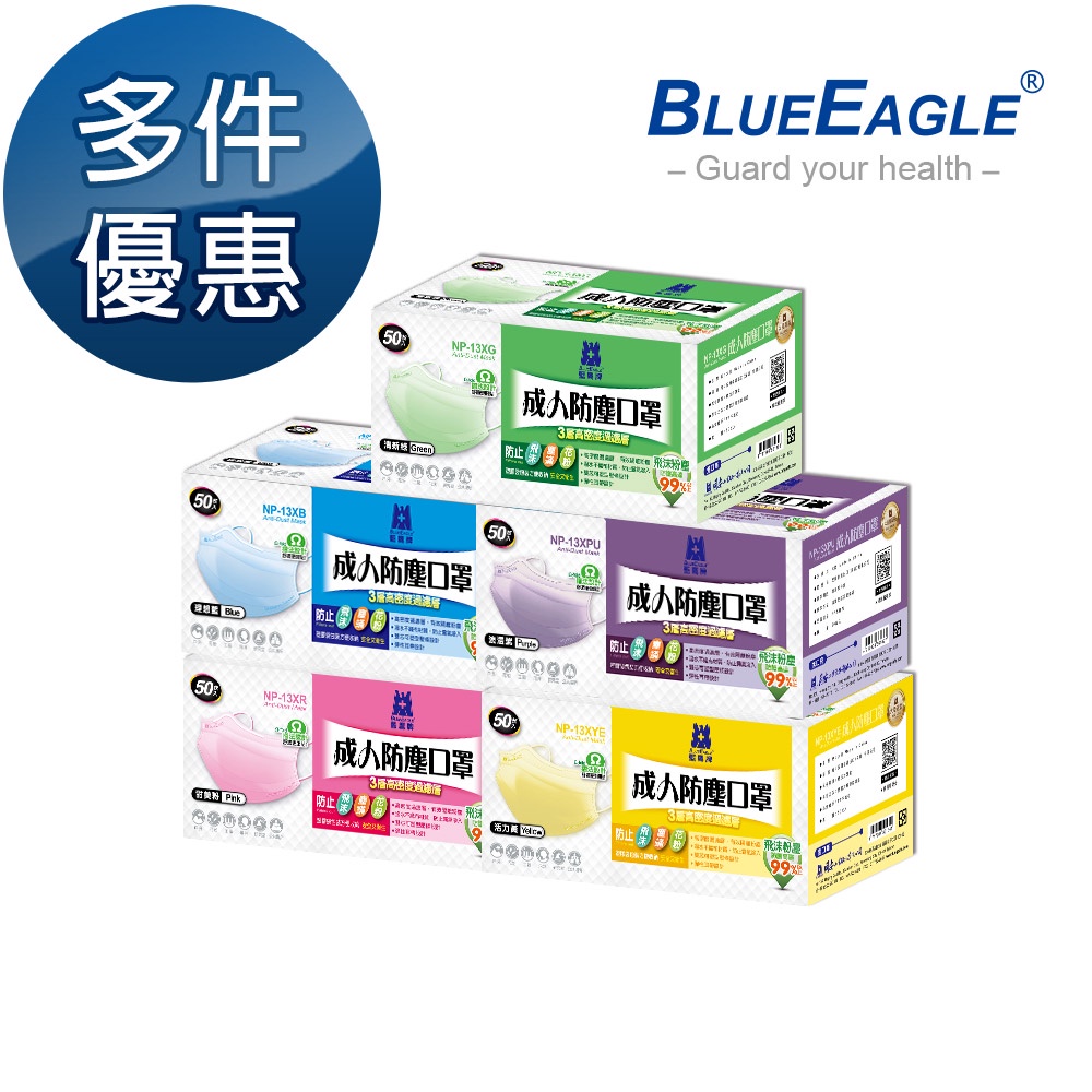 藍鷹牌 馬卡龍系列成人平面防塵口罩 50片x1盒 多件優惠中 NP-13X活力黃|浪漫紫|甜美粉|清新綠|理想藍MasksBlue Eagle 藍鷹牌專業口罩台灣總代理醫碩科技