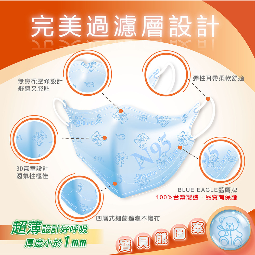 藍鷹牌 N95立體型2-6歲幼童醫用口罩 50片x1盒 多件優惠中 NP-3DSSM綠色寶貝熊|粉色寶貝熊|藍色寶貝熊Medical Gloves & MasksBlue Eagle 藍鷹牌專業口罩台灣總代理醫碩科技