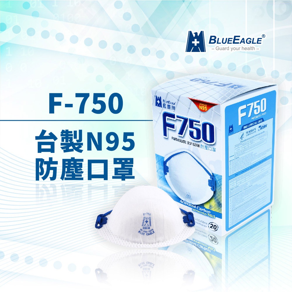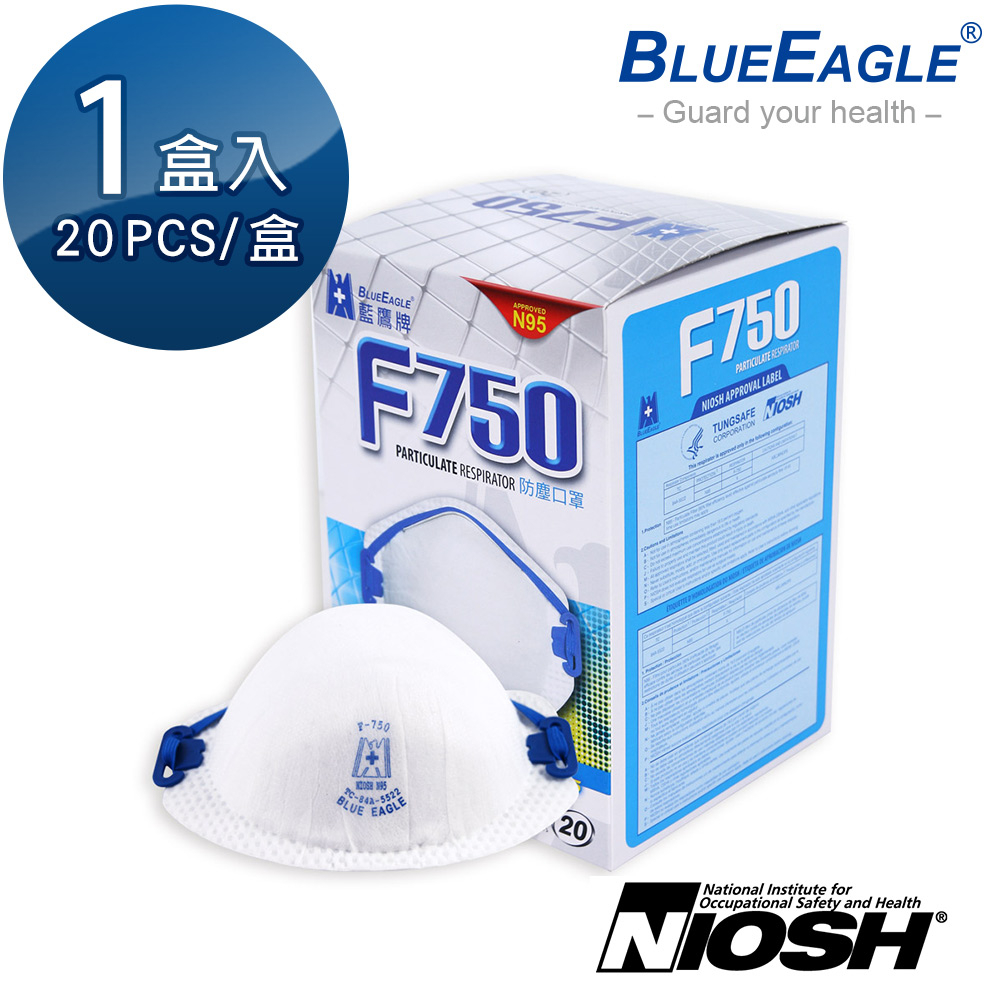藍鷹牌 口罩 美規N95等級 成人 防塵口罩 防護口罩 台製 頭帶式 N95口罩 工業口罩 20片x1盒 F-750