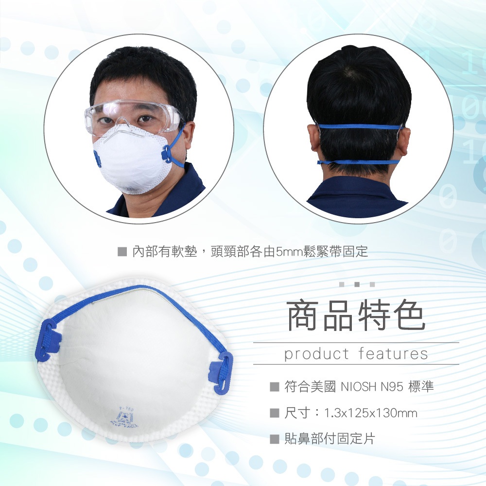 藍鷹牌 口罩 美規N95等級 成人 防塵口罩 防護口罩 台製 頭帶式 N95口罩 工業口罩 20片x1盒 F-7501盒OthersBlue Eagle 藍鷹牌專業口罩台灣總代理醫碩科技