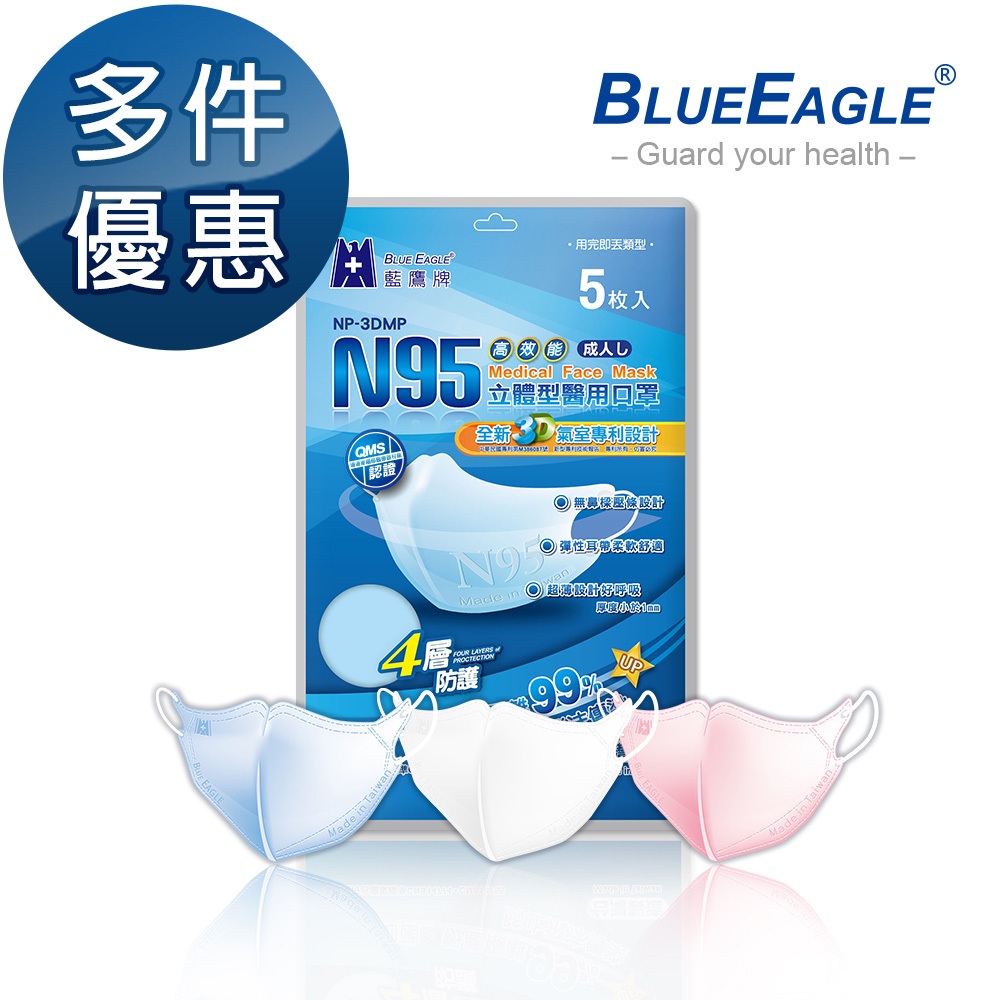 藍鷹牌 N95立體型成人醫用口罩 5片x1包 多件優惠中 NP-3DMOP藍色|綠色|粉色|白色Medical Gloves & MasksBlue Eagle 藍鷹牌專業口罩台灣總代理醫碩科技