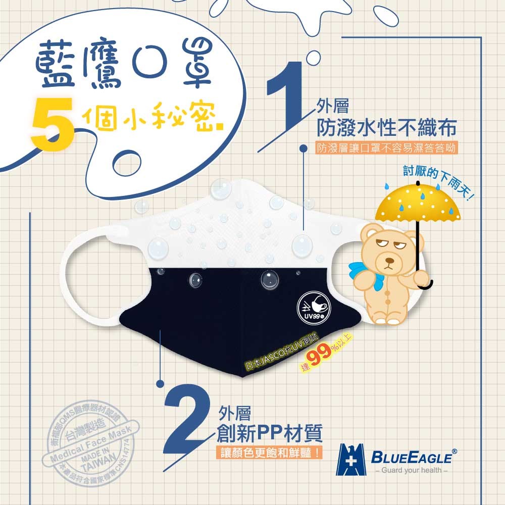 藍鷹牌 N95立體型 幼童醫用口罩 UV系列 50片x1盒 多件優惠中 NP-3DSSMW-50蒼海藍|酒紅色|珊瑚橘|奶茶色|酪梨綠|深海藍|時尚黑|栗鼠棕|碧湖綠|霧灰色Medical Gloves & MasksBlue Eagle 藍鷹牌專業口罩台灣總代理醫碩科技