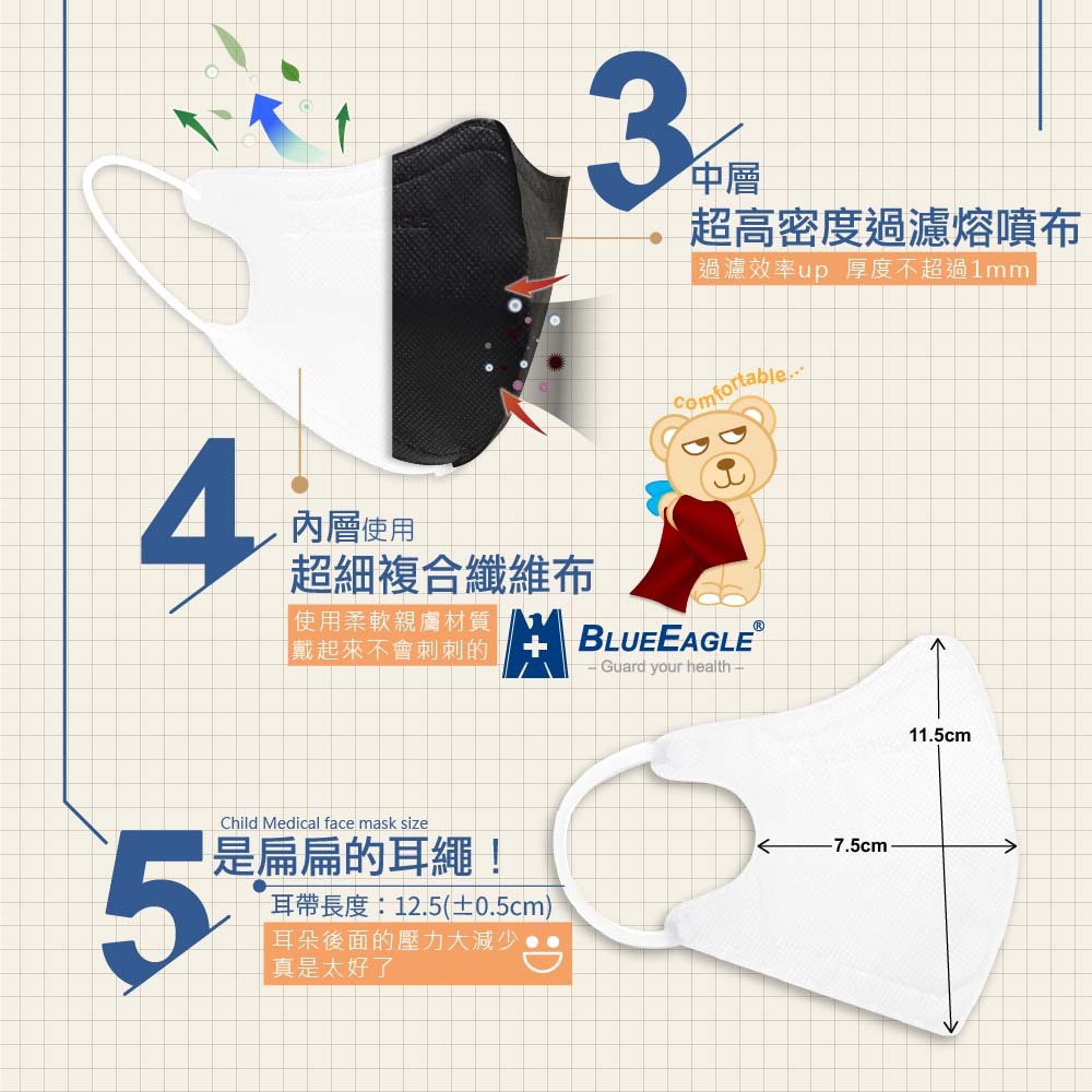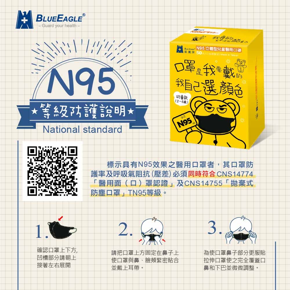 藍鷹牌 N95立體型2-4歲幼幼醫用口罩 50片x1盒 多件優惠中 NP-3DSSSM藍色寶貝熊|綠色寶貝熊|粉色寶貝熊Medical Gloves & MasksBlue Eagle 藍鷹牌專業口罩台灣總代理醫碩科技