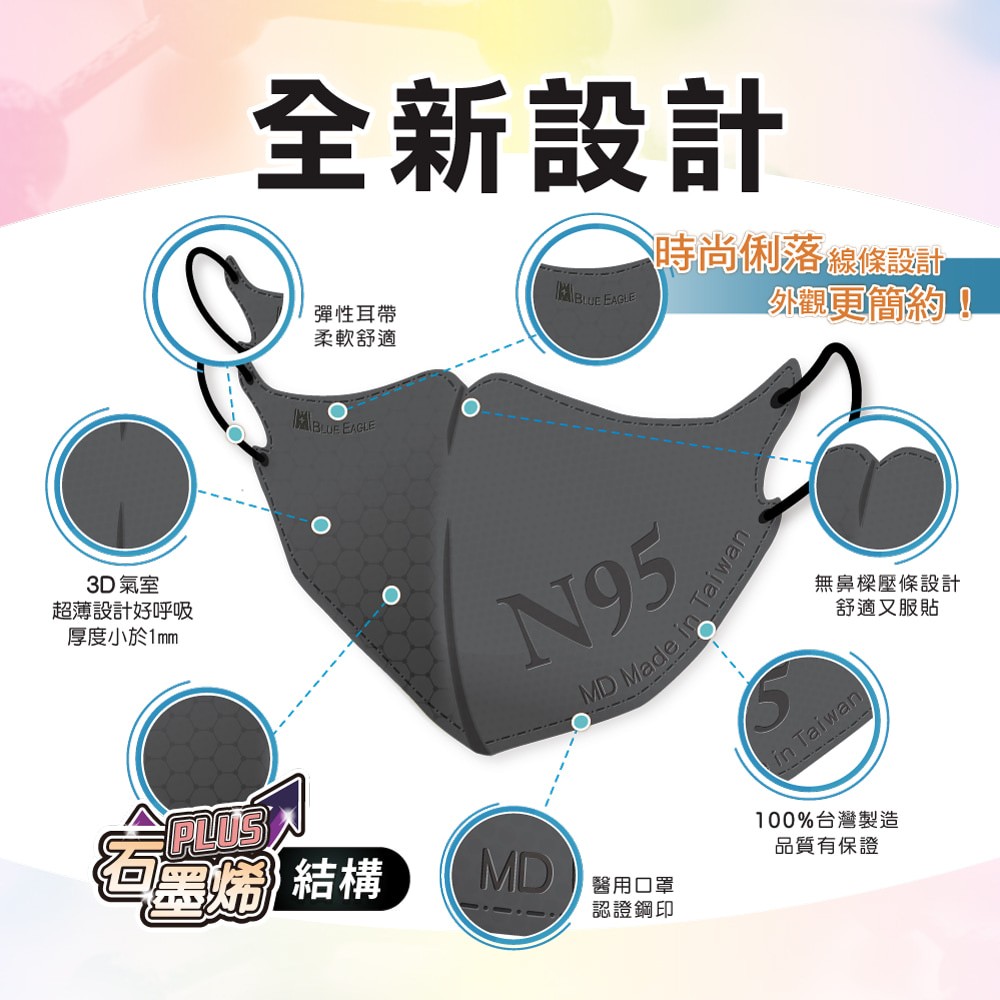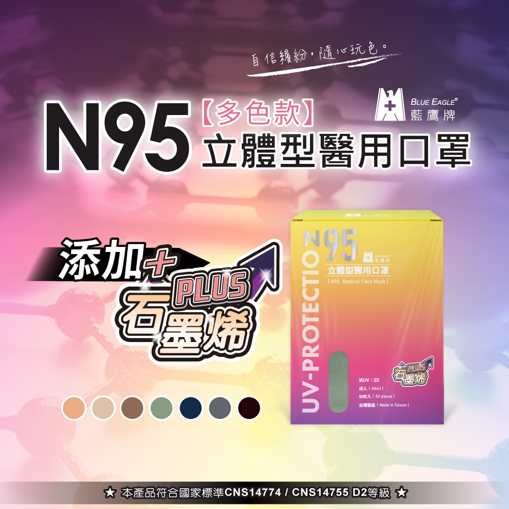 藍鷹牌 N95 石墨烯口罩 3D立體型成人醫用口罩 五層防護 多色口罩 50片/盒 NP-3DMCHW碧湖綠|酪梨綠|深海藍|時尚黑|栗鼠棕|霧灰色|奶茶色|珊瑚橘Medical Gloves & MasksBlue Eagle 藍鷹牌專業口罩台灣總代理醫碩科技