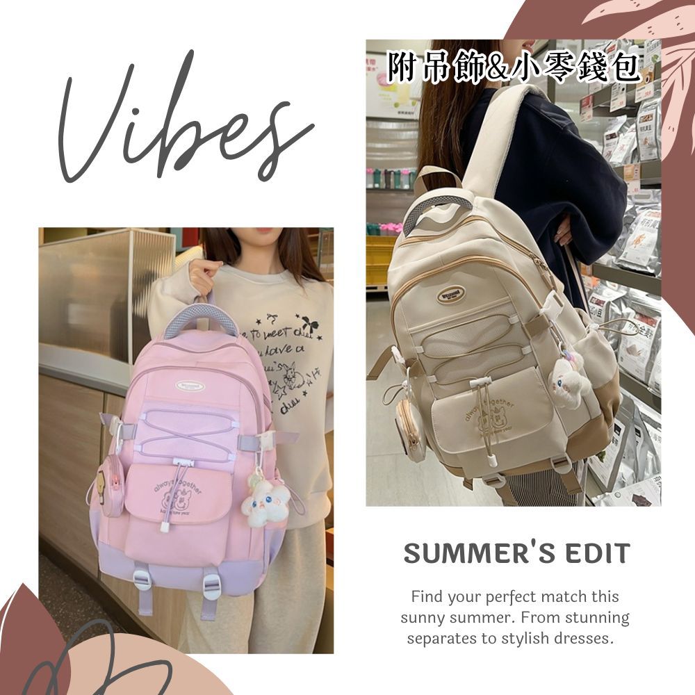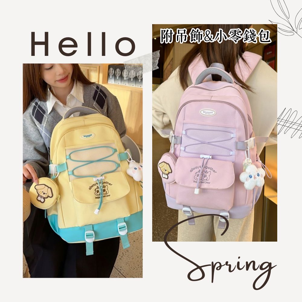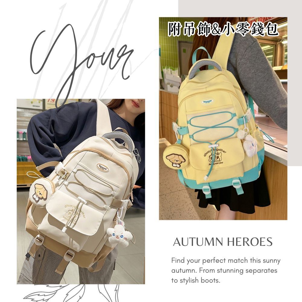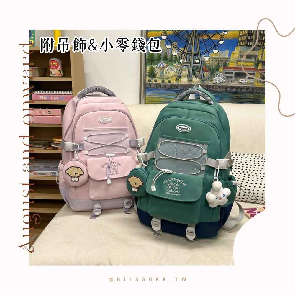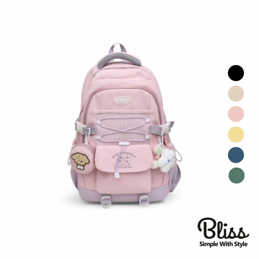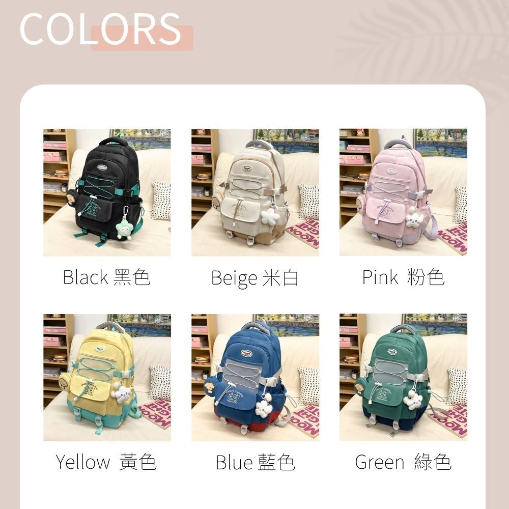 俏皮撞色AS刺繡大容量後背包 書包 後背包 媽媽包 校園 出遊 6色可選黑色|米白|粉色|黃色|藍色|綠色Bliss ~ 各國流行包款 泰國原廠化妝保養品