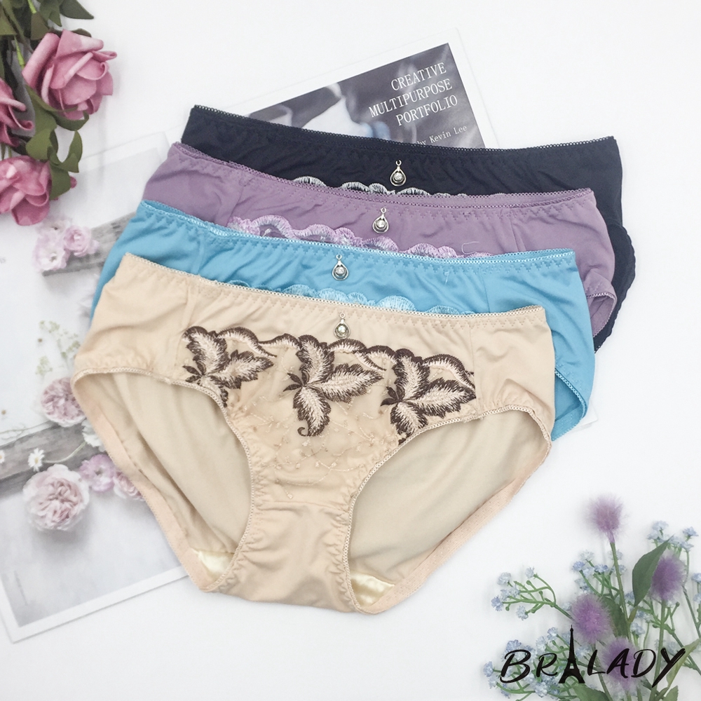 波蕾妮|羽葉花 蠶絲內褲 XL【4801褲】包臀 吸濕排汗 保養 私密處 511藍色 XL|膚色 XL|紫色 XL|黑色 XLPantiesBra Lady波蕾妮內衣官方旗艦店