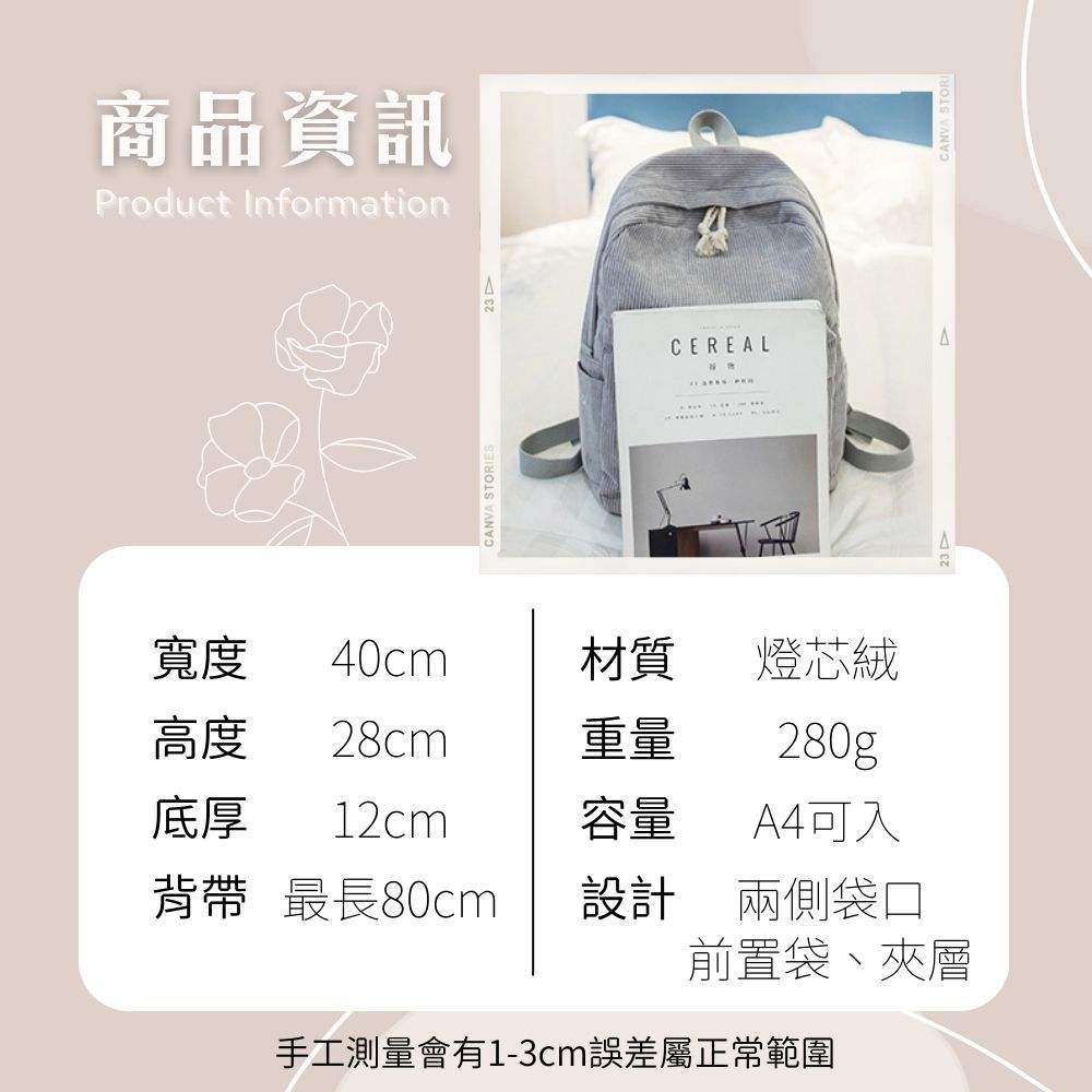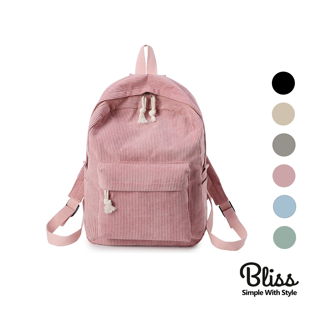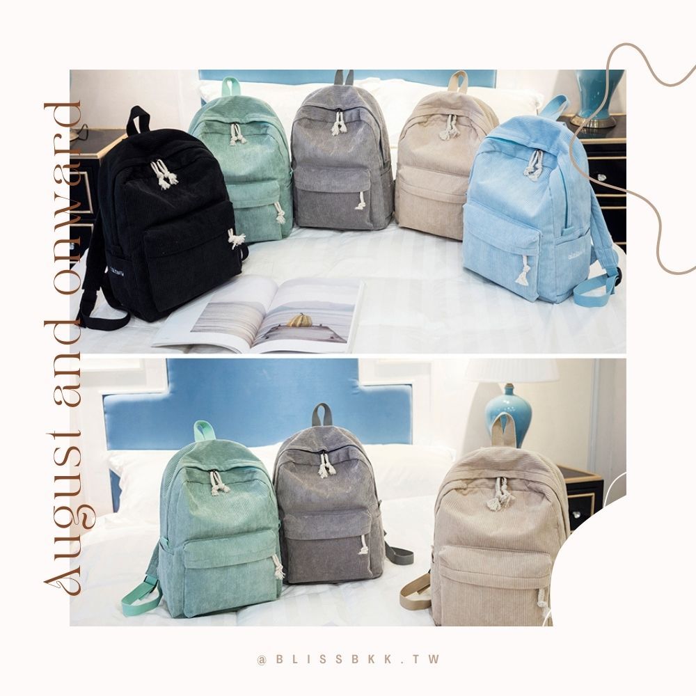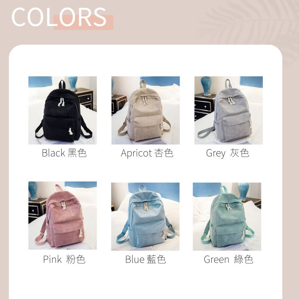 簡約直條燈芯絨休閒後背包 後背包 A4 書包 上課 無印風 電腦包 大容量 6色可選黑色|杏色|灰色|粉色|藍色|綠色Bliss ~ 各國流行包款 泰國原廠化妝保養品