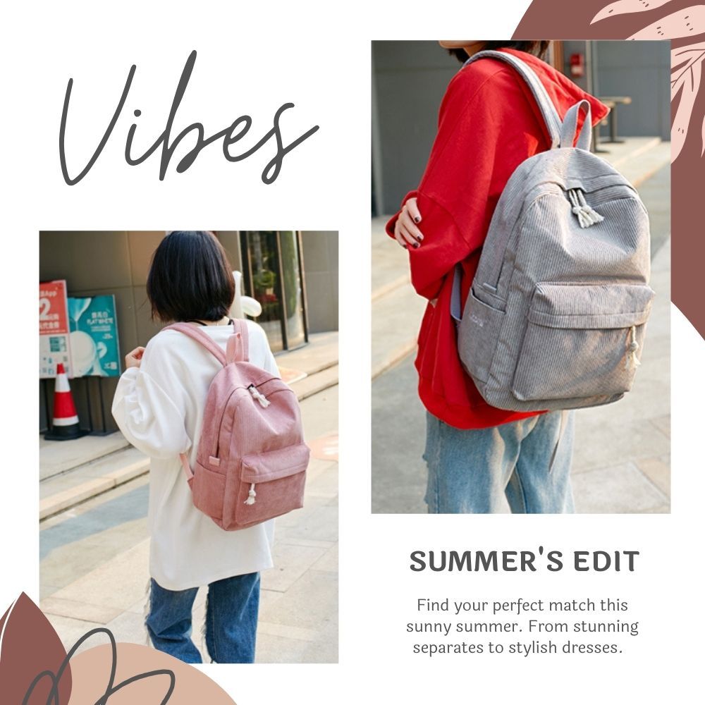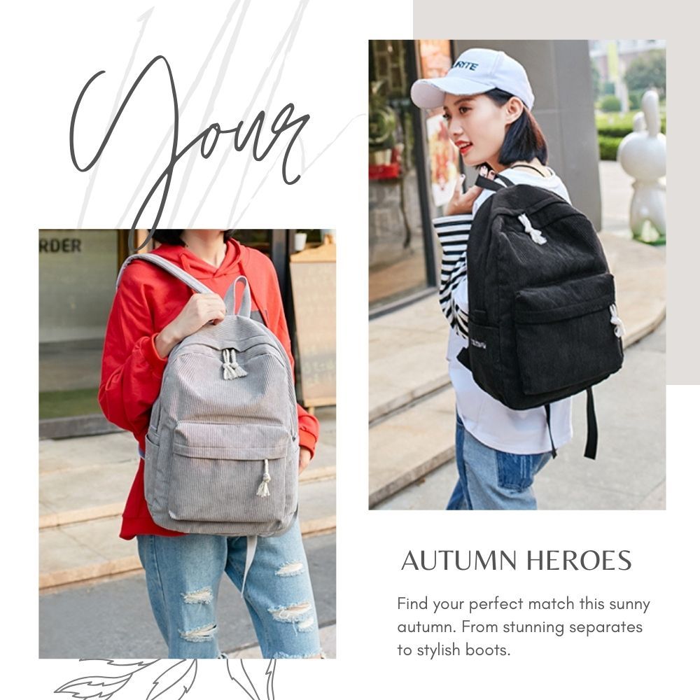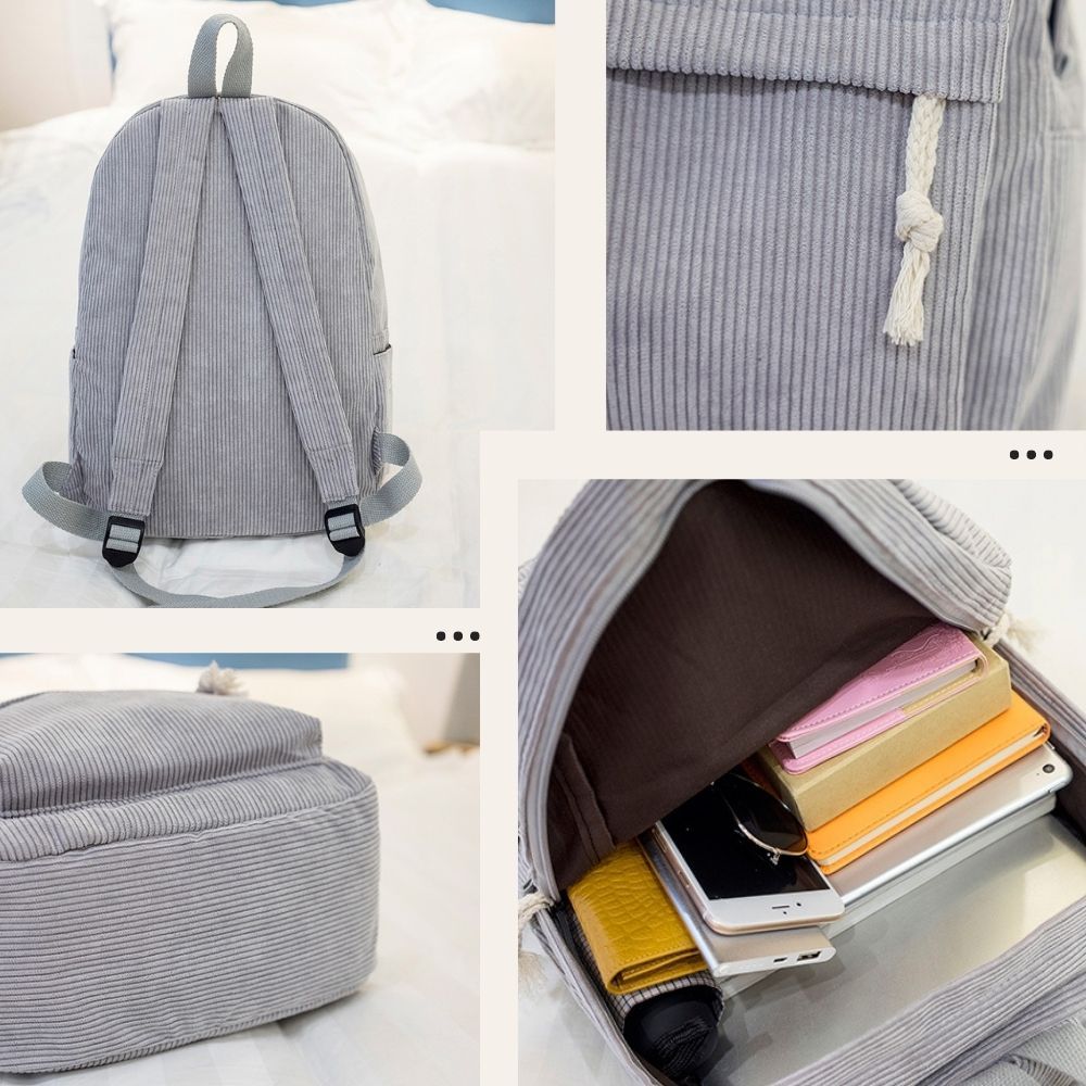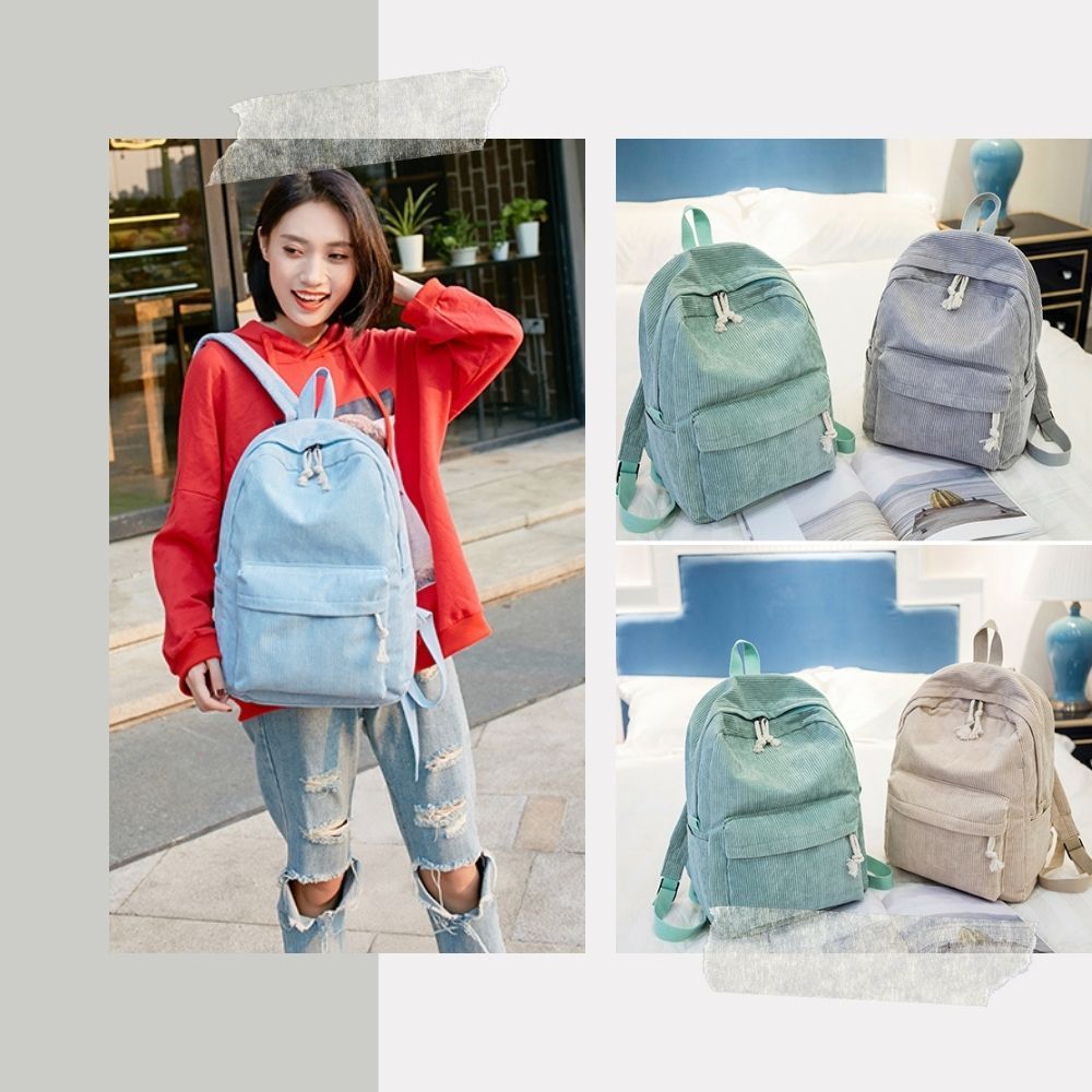 簡約直條燈芯絨休閒後背包 後背包 A4 書包 上課 無印風 電腦包 大容量 6色可選黑色|杏色|灰色|粉色|藍色|綠色Bliss ~ 各國流行包款 泰國原廠化妝保養品