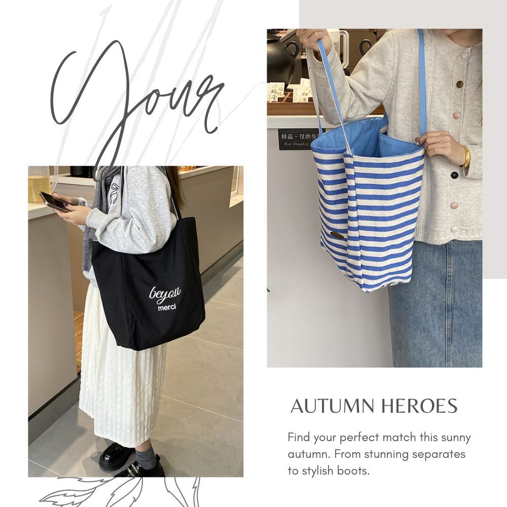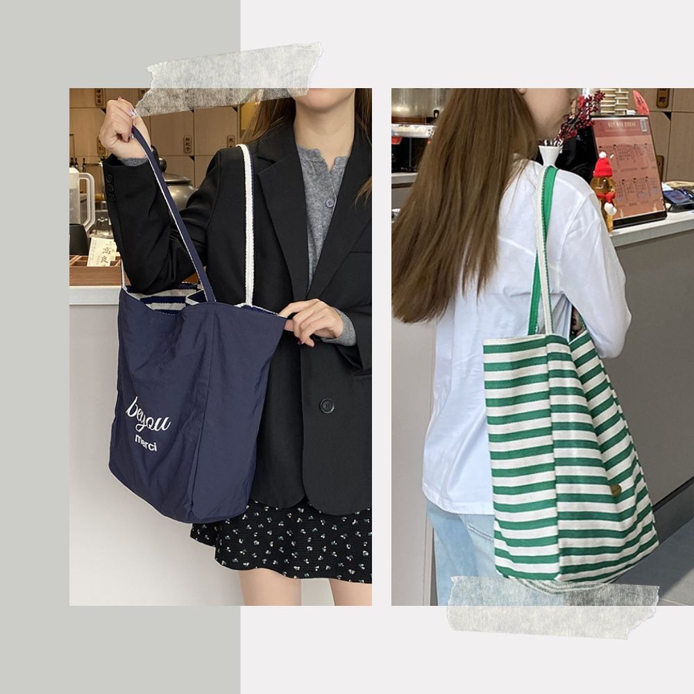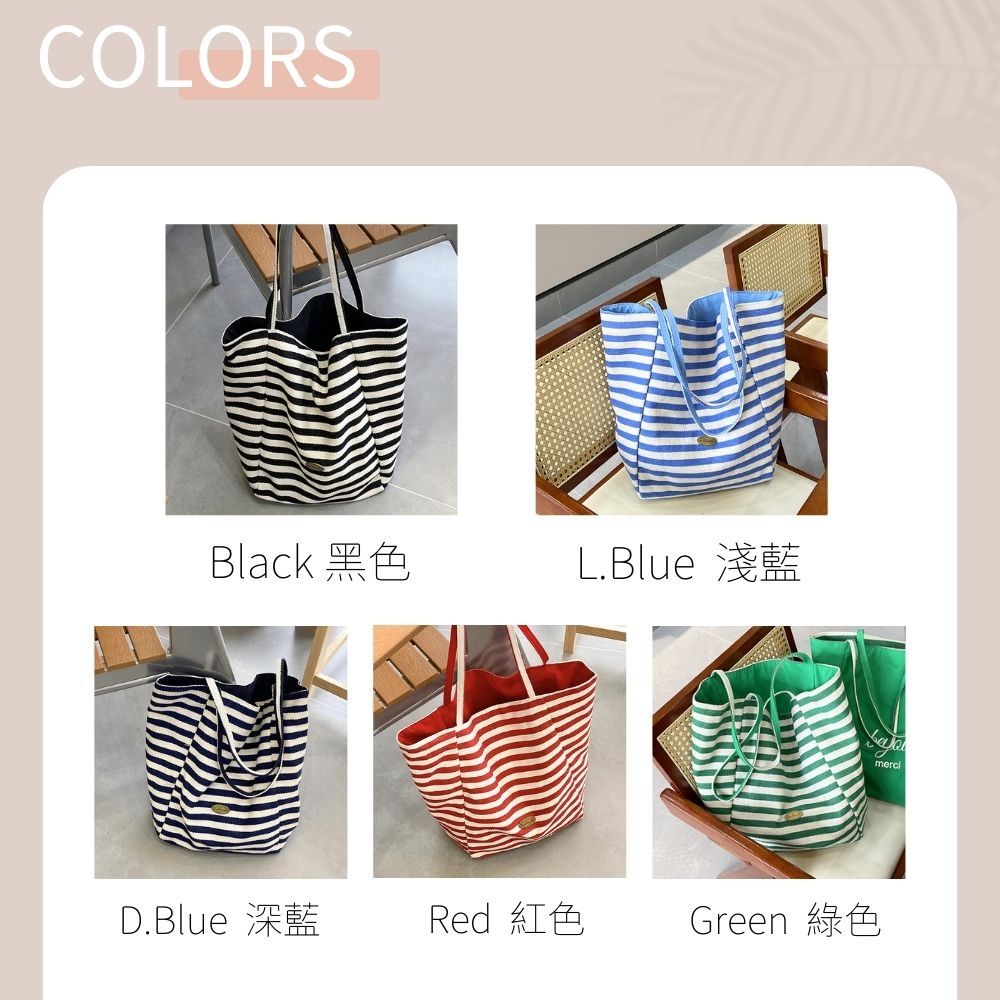 雙面質感條紋beyou托特包 肩背包 購物袋 橫條紋 5色可選