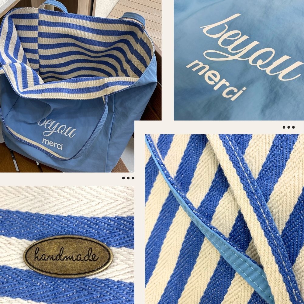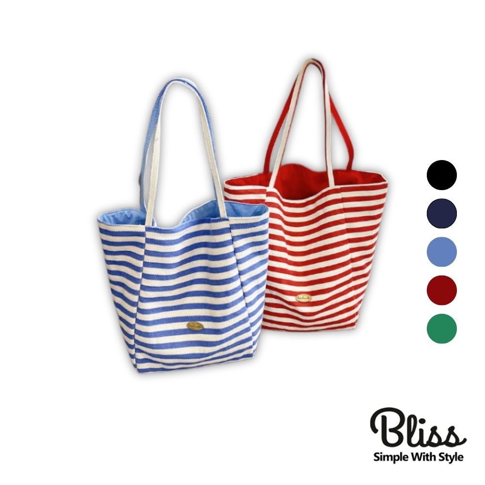 雙面質感條紋beyou托特包 肩背包 購物袋 橫條紋 5色可選黑色|淺藍|深藍|紅色|綠色Bliss ~ 各國流行包款 泰國原廠化妝保養品