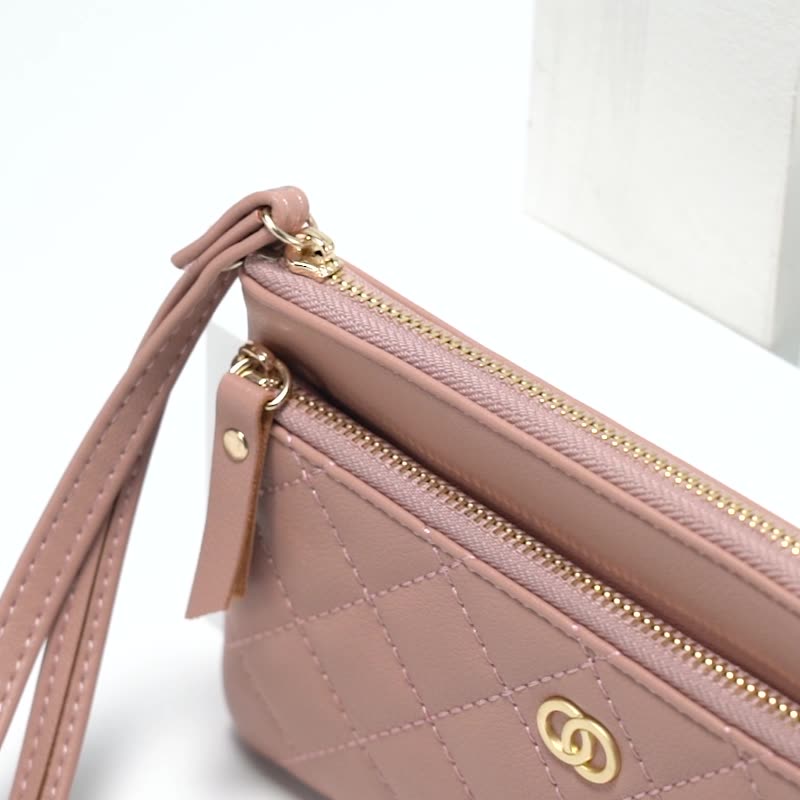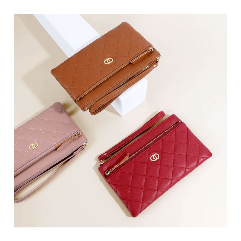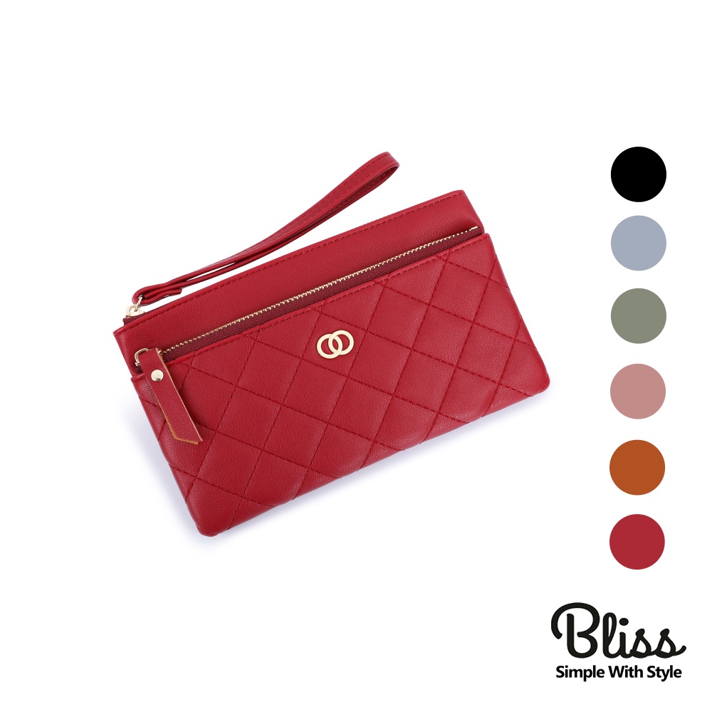 小香菱格紋雙層手拿包 時尚手拿包 皮夾 6色可選黑色|粉色|藍色|棕色|綠色|紅色Bliss ~ 各國流行包款 泰國原廠化妝保養品