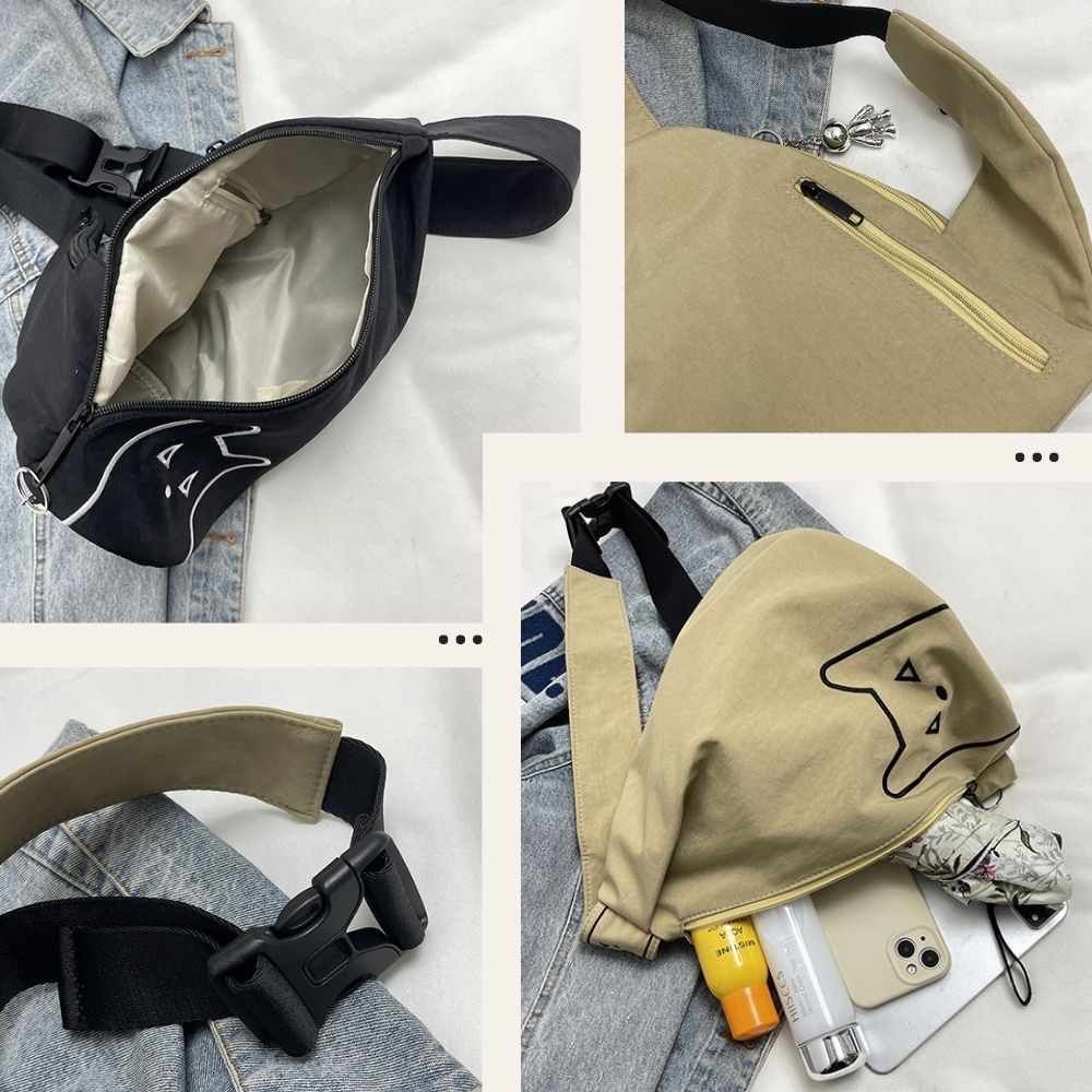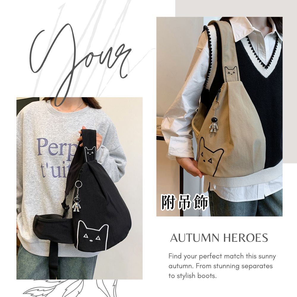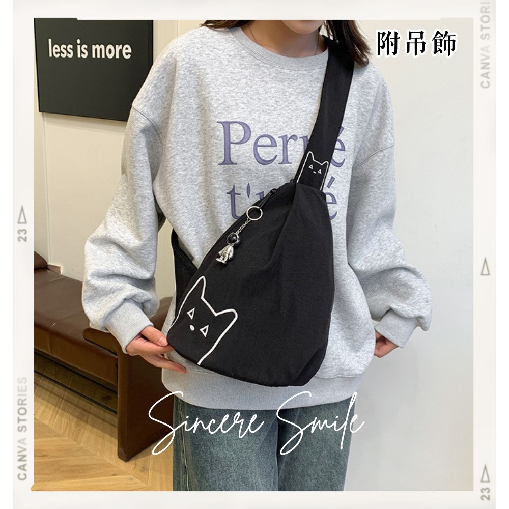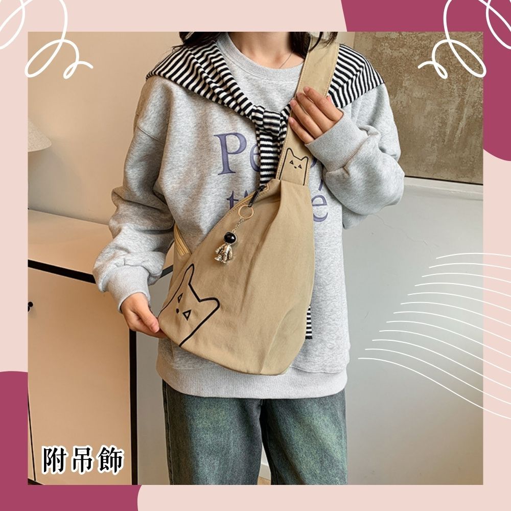 簡約刺繡線條貓咪側背袋 肩背包 手提包 斜背包 側背包 胸包 2色黑色|卡其Bliss ~ 各國流行包款 泰國原廠化妝保養品