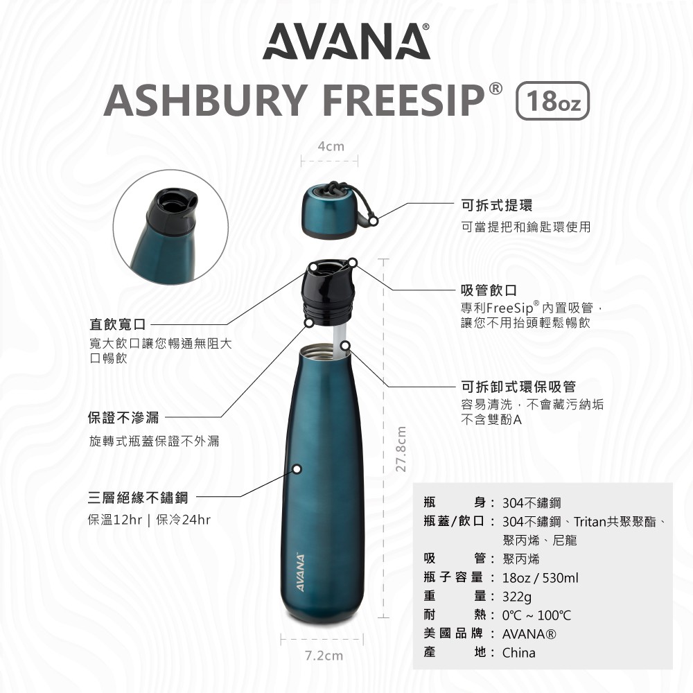 【AVANA】Ashbury創新雙飲口隨身瓶|三層絕緣不鏽鋼|18oz/24oz|保溫瓶/保溫杯【AVANA A款】18oz /530ml,冰川|24oz /705ml,青銅灰|18oz /530ml,碧草綠|18oz /530ml,石榴紅|18oz /530ml,雪淨白|18oz /530ml,古銅棕|18oz /530ml,青銅灰|18oz /530ml,深海綠|18oz /530ml,樹蔭|24oz /705ml,碧草綠|18oz /530ml,羅蘭紫|24oz /705ml,樹蔭|24oz /705ml,雪淨白|18oz /530ml,映照|24oz /705ml,羅蘭紫|24oz /705ml,石榴紅|24oz /705ml,耀石黑|24oz /705ml,古銅棕|24oz /705ml,深海綠|18oz /530ml,耀石黑|24oz /705ml,映照|24oz /705ml,冰川Water Bottles & AccessoriesBlenderBottle美國官方授權