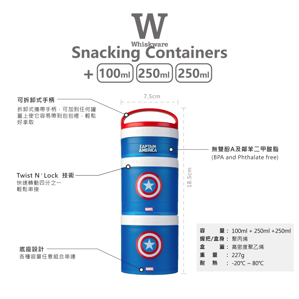 【Whiskware】Snacking三層零食盒|任意組合串連|100+250+250(ml)|蛋白粉盒【三層零食盒】兔子&小雞|時尚白|葡萄紫|Marvel-鋼鐵人|Marvel-蜘蛛人|Marvel-美國隊長|Marvel-驚奇隊長|鴨鴨|牛牛|公雞|樹懶|貓熊|獨角獸|豬豬Fitness EquipmentBlenderBottle美國官方授權