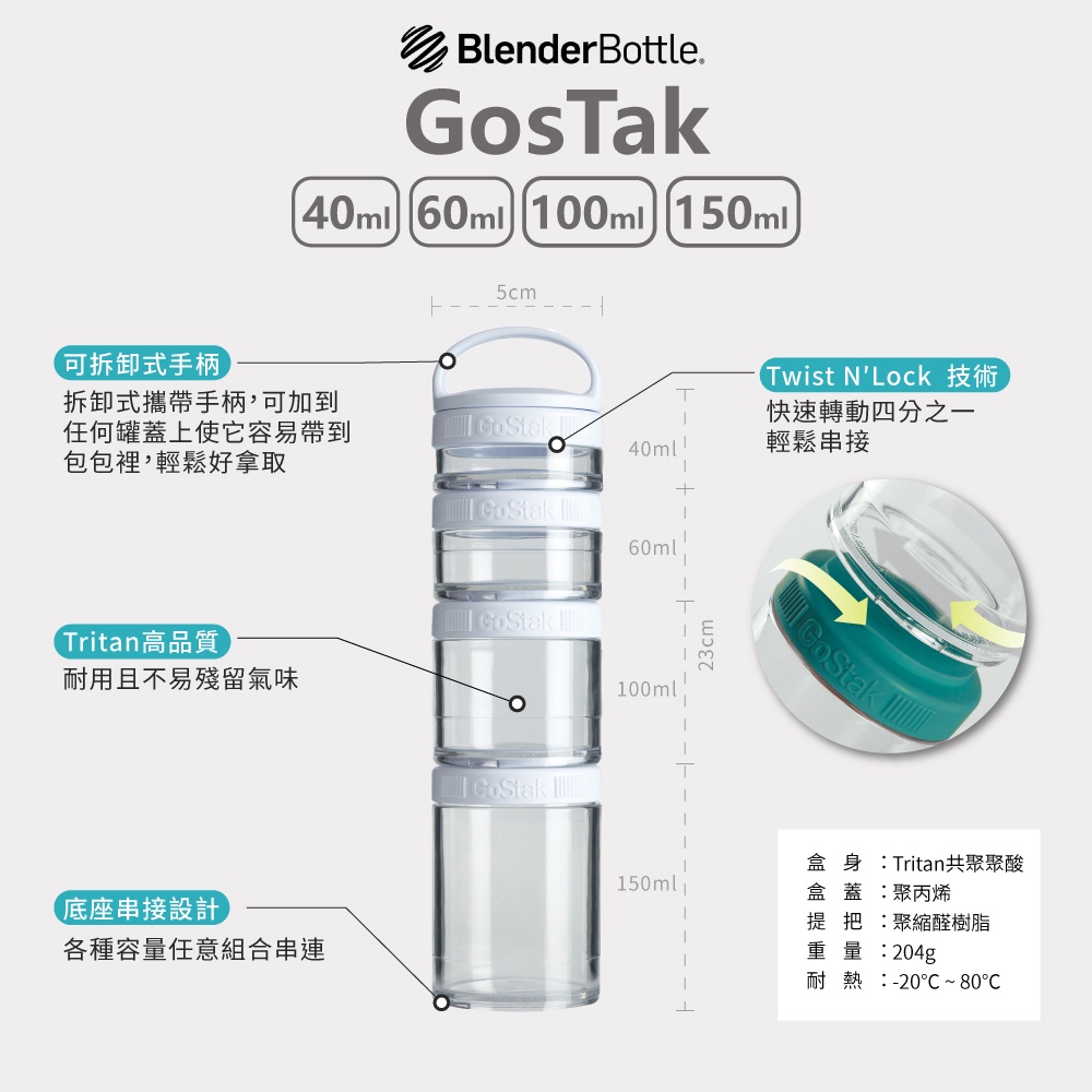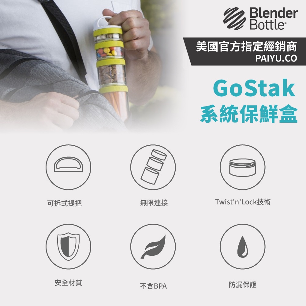 【BlenderBottle】系統保鮮盒Gostak(CGS0018) 獨立系統保存盒 補給品保鮮盒【四層保鮮盒】晴空藍|神秘黑|蜜桃粉|時尚白Food StorageBlenderBottle美國官方授權