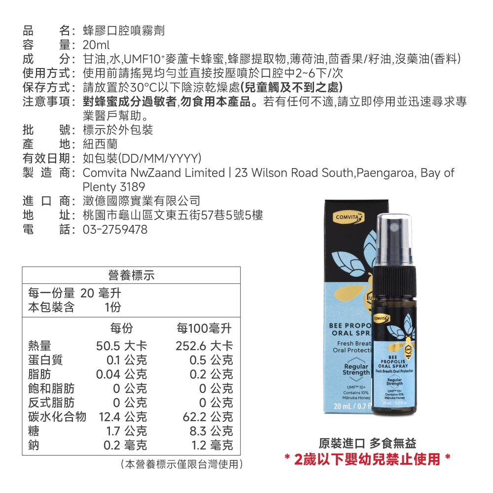 【Comvita麥蘆卡】蜂膠口腔噴霧劑-20ml麥蘆卡蜂膠口腔噴霧劑-一般型Oral CareBlenderBottle美國官方授權