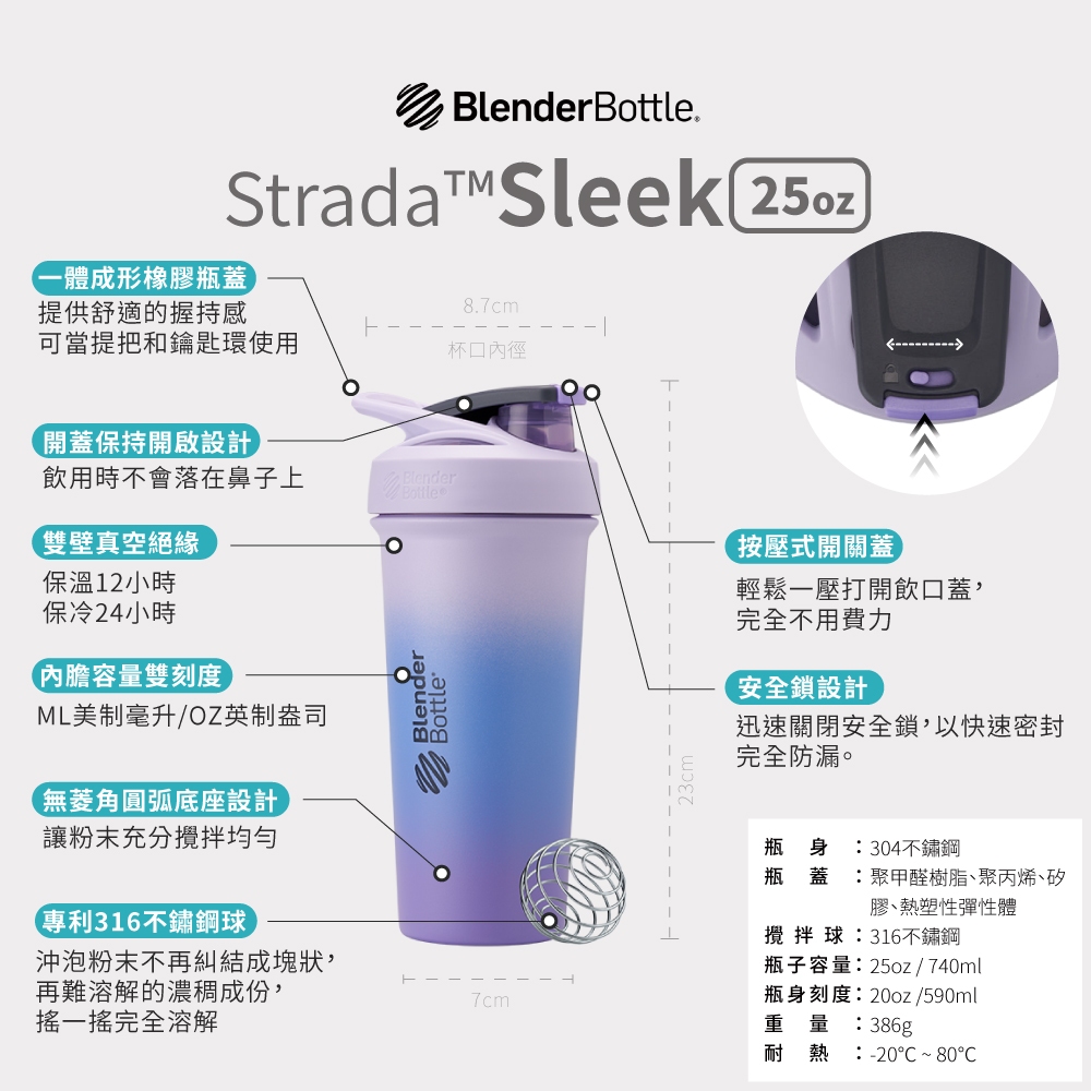 【BlenderBottle】Strada / Sleek 保冰保溫杯|710ml/740ml 不鏽鋼搖杯 限量特別版25oz【Sleek】幻影黑2.0|25oz【Sleek】甜點系列-珍珠熊|25oz【Sleek】甜點系列-布丁喵|25oz 【Sleek】星光銀|25oz 【Sleek】霧金玫瑰2.0|25oz【Sleek】寵物系列-喵星人|25oz【Sleek】寵物系列-水豚桔茶|25oz【Sleek】海洋系列-鯨奇漂流|24oz 【一般款】珊瑚橘|25oz【Sleek】粉蝶藍|25oz【Sleek】時尚白2.0|24oz 【Marvel】驚奇隊長|25oz 【Sleek】山櫻粉|25oz【Sleek】 浪漫薰衣草|25oz 【Sleek】覆盆子|25oz【Sleek】 桑格利亞|25oz 【Sleek】海浪泡沫|25oz【Sleek】水果系列-桃開心|25oz【Sleek】水果系列-樂鳳梨|25oz【Sleek】寵物系列-甜筒刺蝟|25oz【Sleek】寵物系列-旱鴨子|25oz【Sleek】櫻語花漾|25oz【Sleek】紫色蒲公英|25oz【Sleek】粉紅棱鏡|25oz【Sleek】冷杉拿鐵|25oz【Sleek】香草拿鐵|25oz【Sleek】鋼鐵灰|25oz【Sleek】小花兔兔Fitness EquipmentBlenderBottle美國官方授權