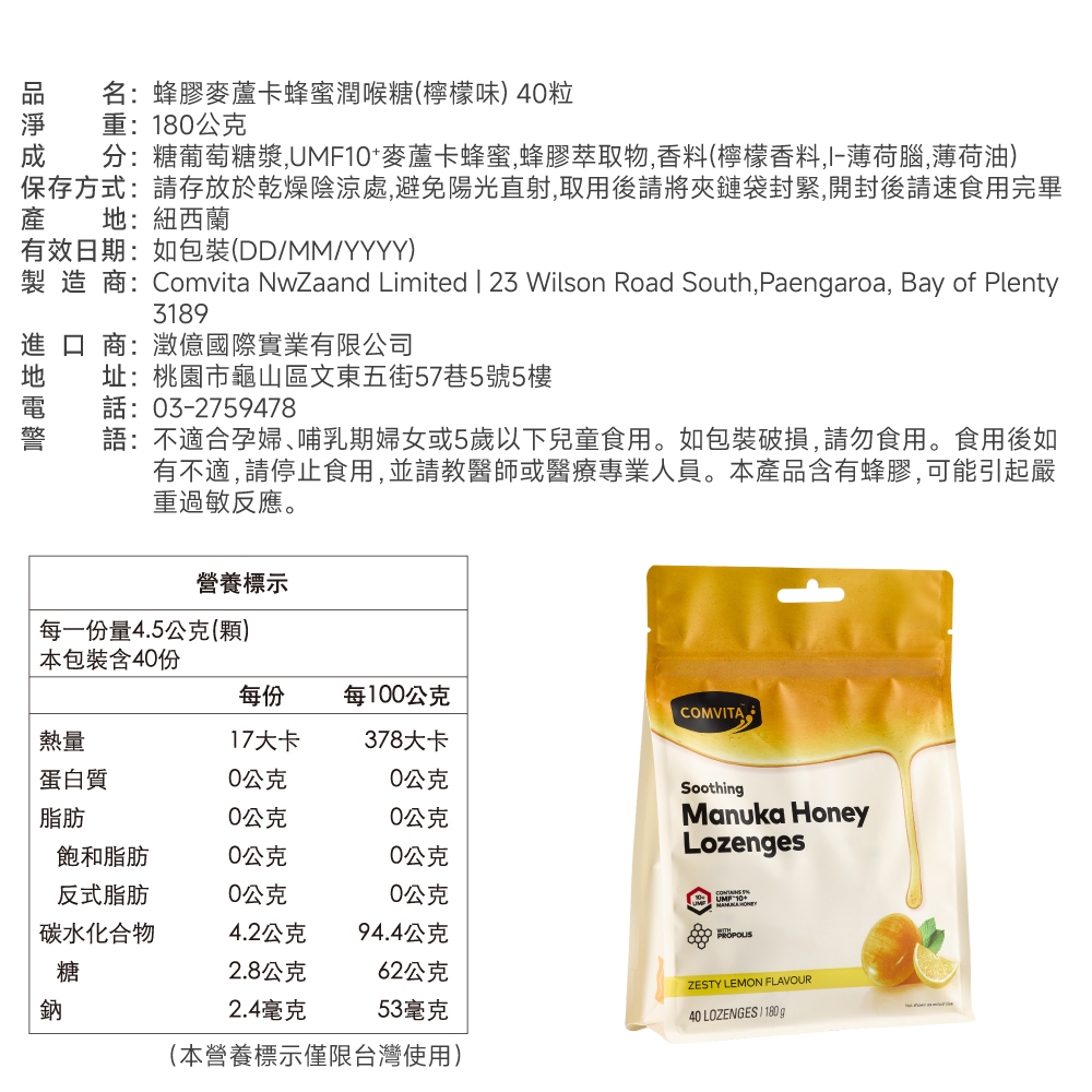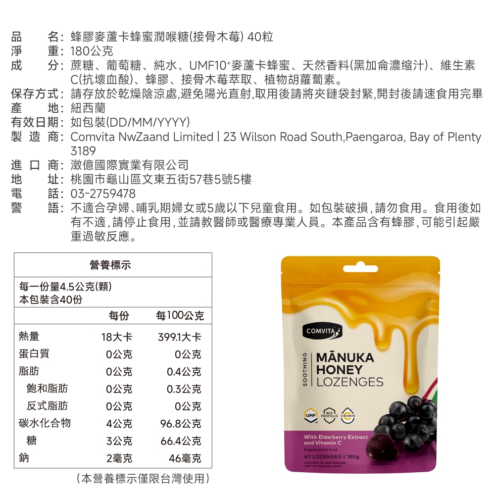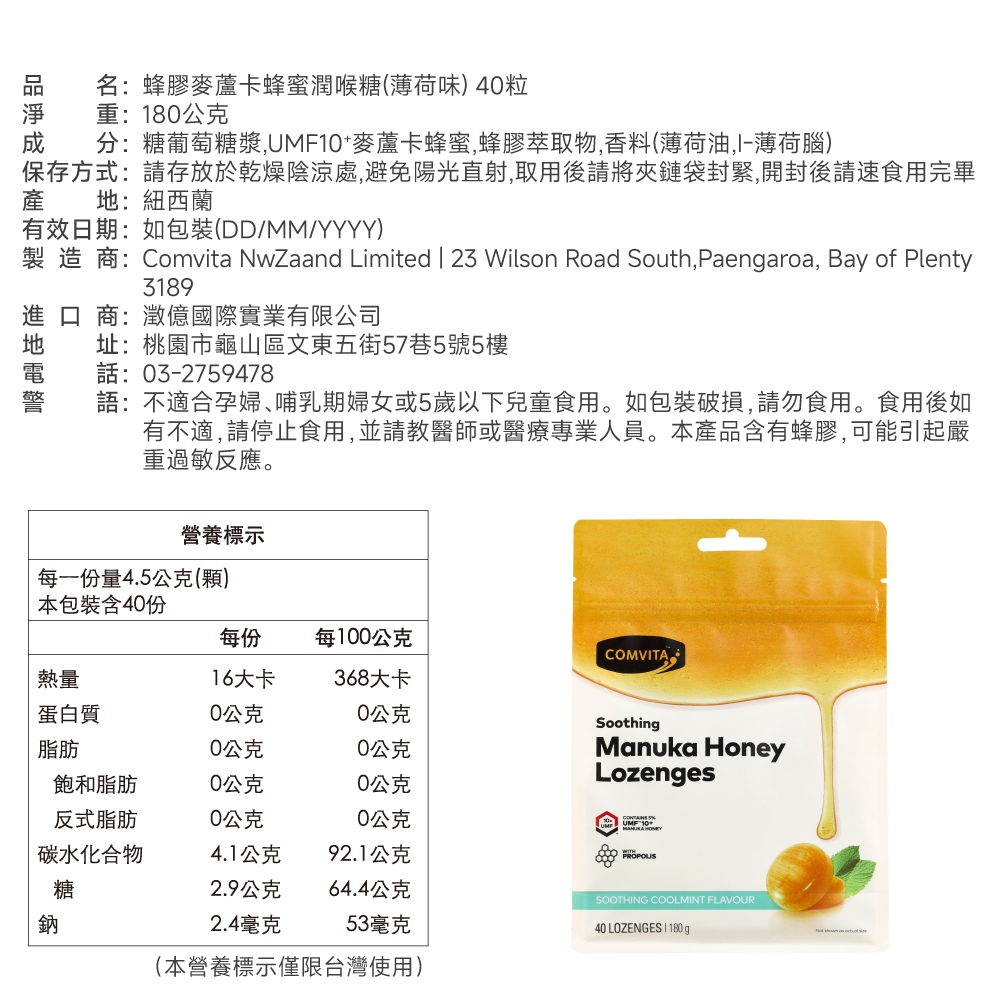 【Comvita麥蘆卡】蜂蜜潤喉糖-40粒麥蘆卡蜂蜜潤喉糖-接骨木莓-40粒|麥蘆卡蜂蜜潤喉糖-檸檬-40粒|麥蘆卡蜂蜜潤喉糖-薄荷-40粒|麥蘆卡蜂蜜潤喉糖-橄欖葉-40粒Well BeingBlenderBottle美國官方授權