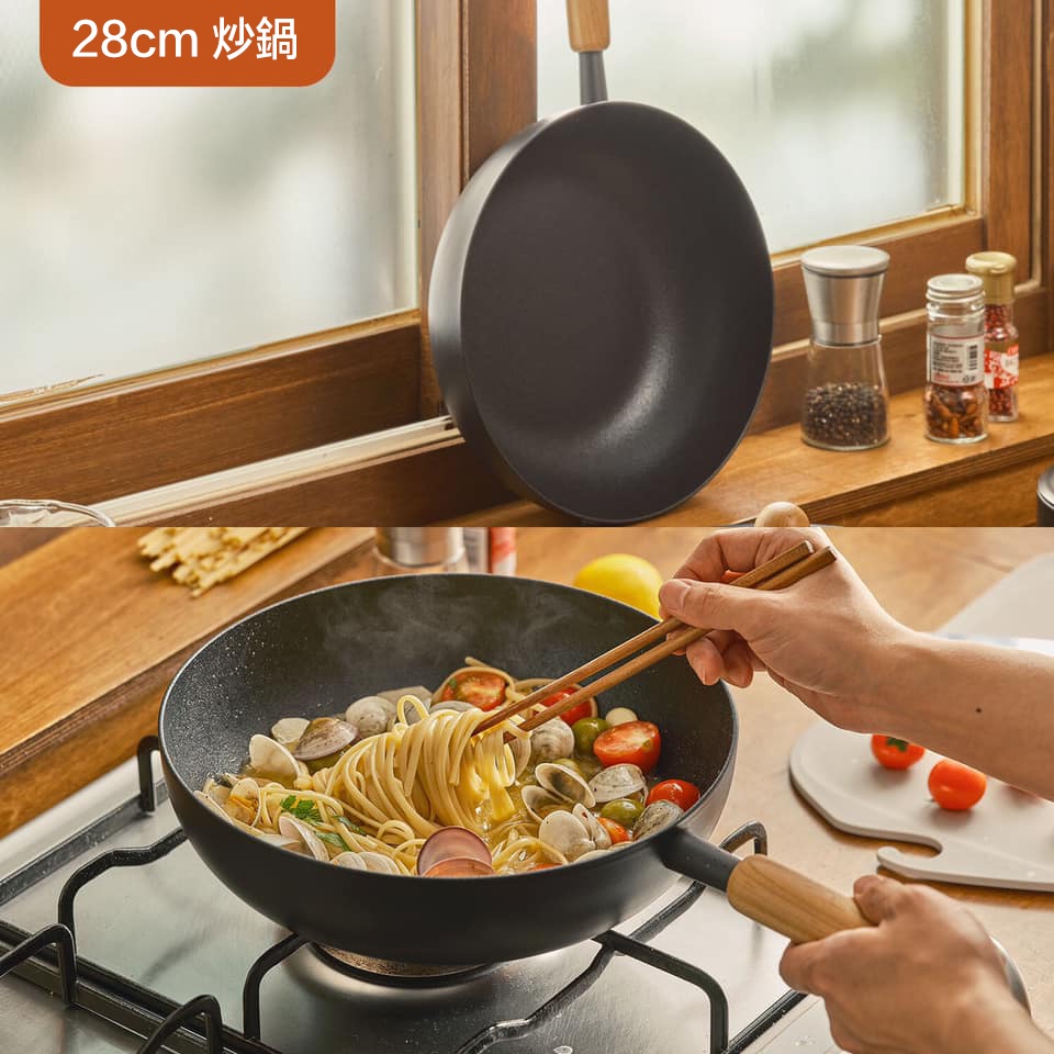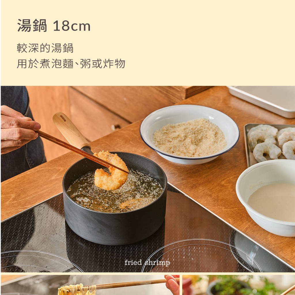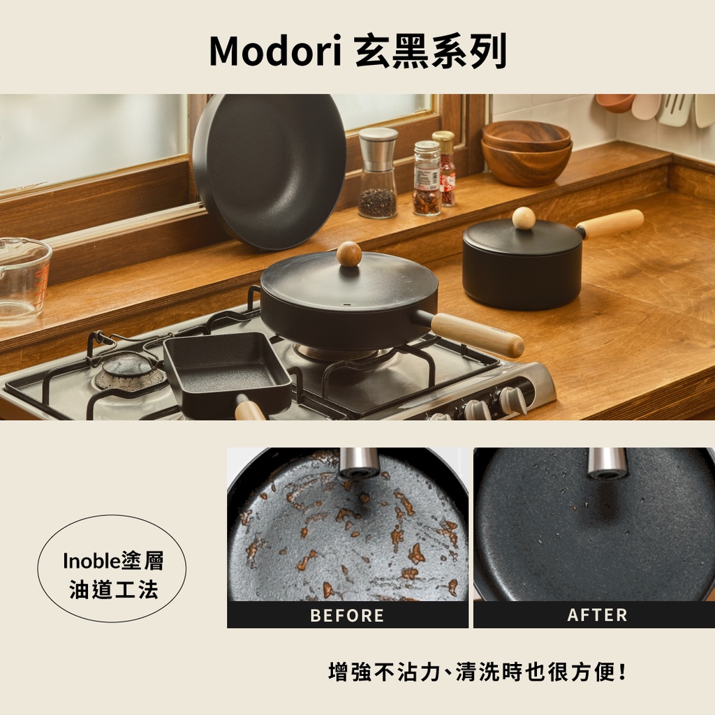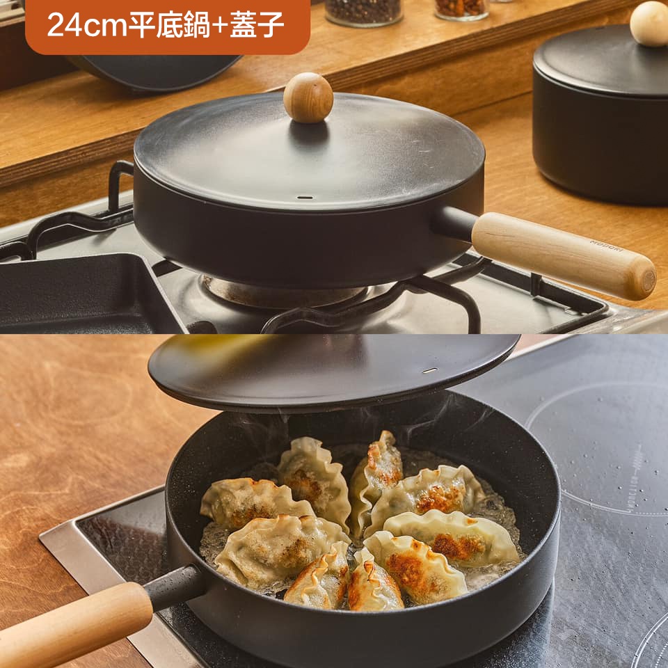 【Modori】玄黑平底鍋組玄黑平底鍋組_方形平底鍋 18x13cm|玄黑平底鍋組_湯鍋(含蓋子) 18cm|玄黑平底鍋組_平底鍋 24cm|玄黑平底鍋組_平底鍋蓋子 24cm|玄黑平底鍋組_炒鍋 28cmPansBlankTW