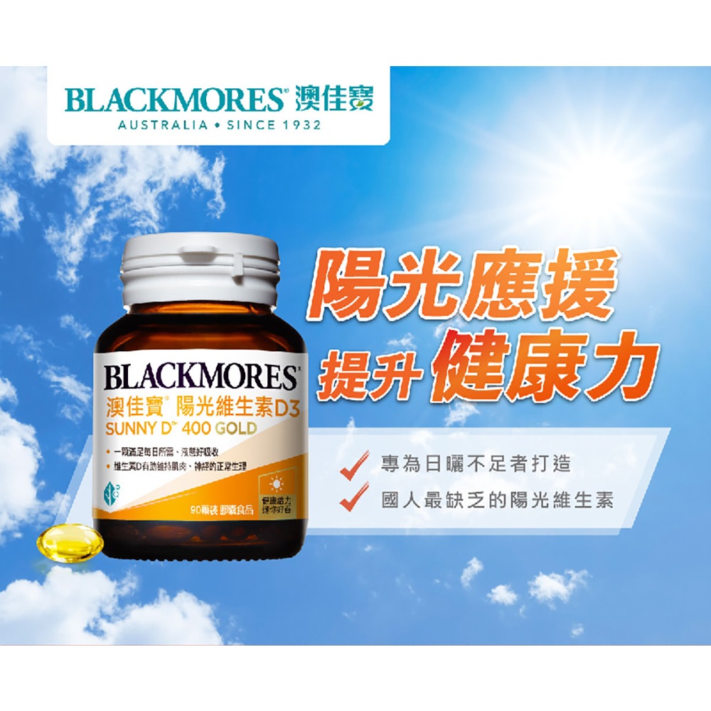 【BLACKMORES 澳佳寶】陽光維生素D3 (90顆x3入)【BLACKMORES 澳佳寶】陽光維生素D3 (90顆x3入)Well BeingBLACKMORES 澳佳寶 官方旗艦店