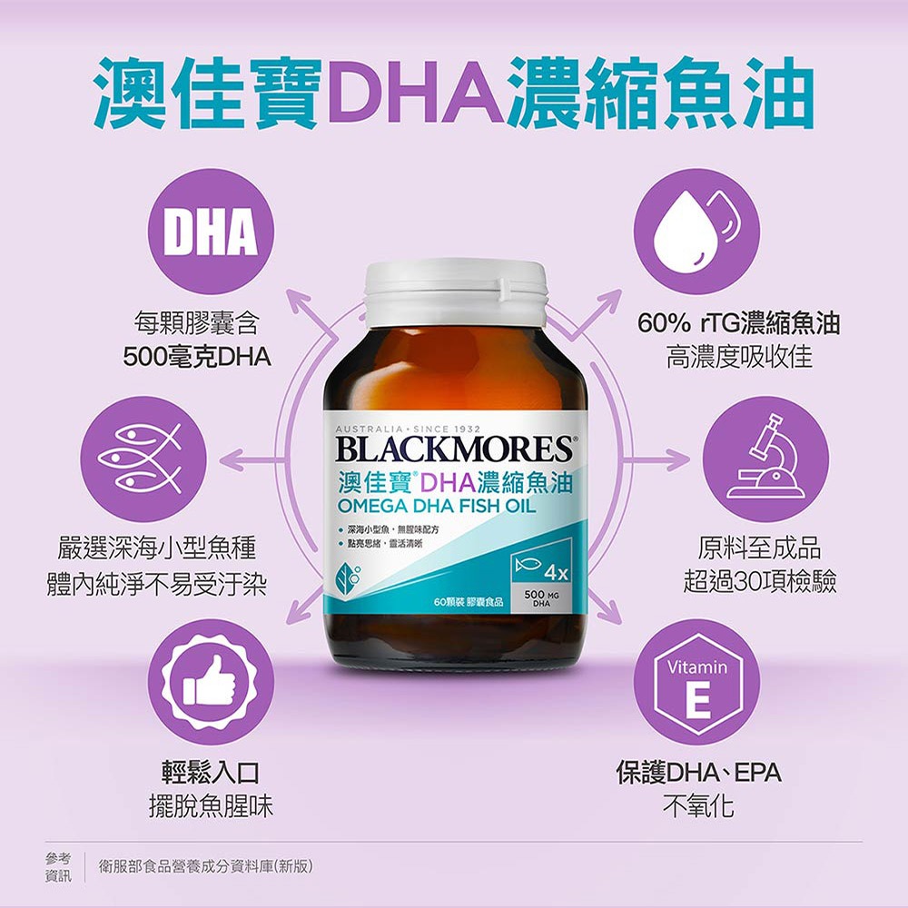 【BLACKMORES 澳佳寶】DHA精粹濃縮深海魚油(60顆x1入)【BLACKMORES 澳佳寶】DHA精粹濃縮深海魚油(60顆x1入)Well BeingBLACKMORES 澳佳寶 官方旗艦店