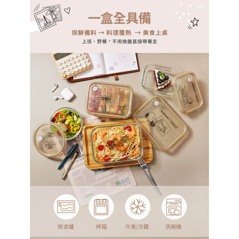 新品上市【康寧 Snapware】SNOOPY史努比復刻黑白耐熱玻璃保鮮盒三件組/可微波/烤箱C01|C02|C03Food StorageBlack Hammer|美國康寧|掌廚|IdEa LifE餐廚