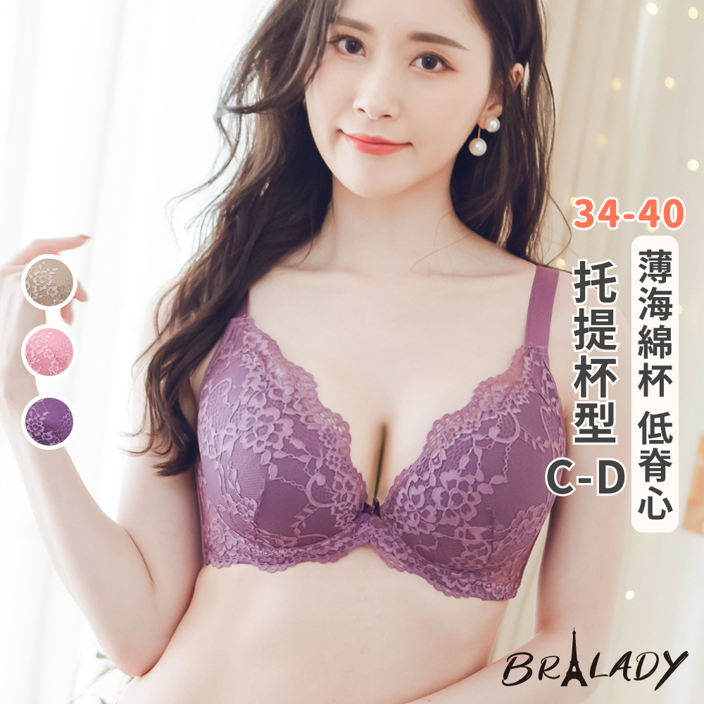 波蕾妮|深V低脊心34-40蕾絲包覆內衣 C D杯【M18826】收副乳 薄杯 大尺碼 機能內衣 調整型粉色,34/75 C|粉色,36/80 C|粉色,38/85 C|粉色,40/90 C|紫色,34/75 C|紫色,36/80 C|紫色,38/85 C|紫色,40/90 C|可可,34/75 C|可可,36/80 C|可可,38/85 C|可可,40/90 CBrasBra Lady波蕾妮內衣官方旗艦店