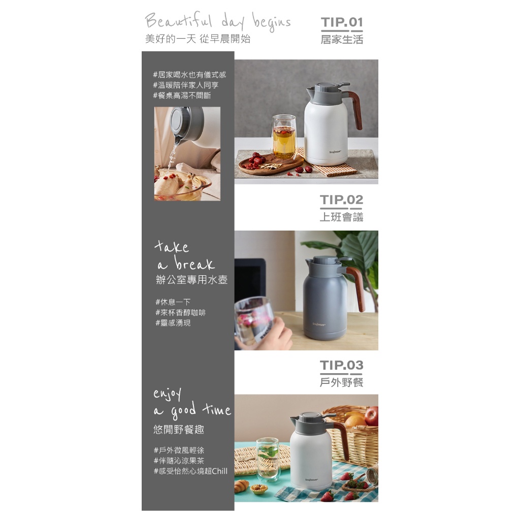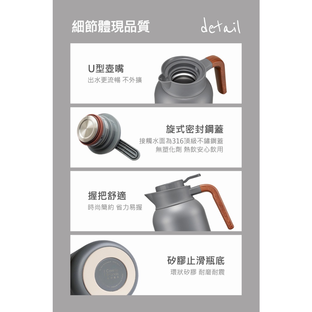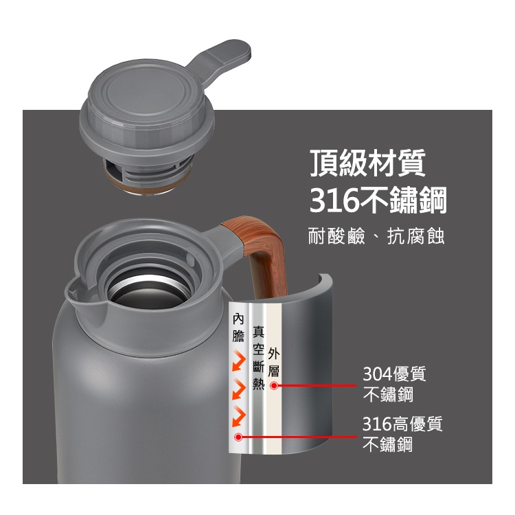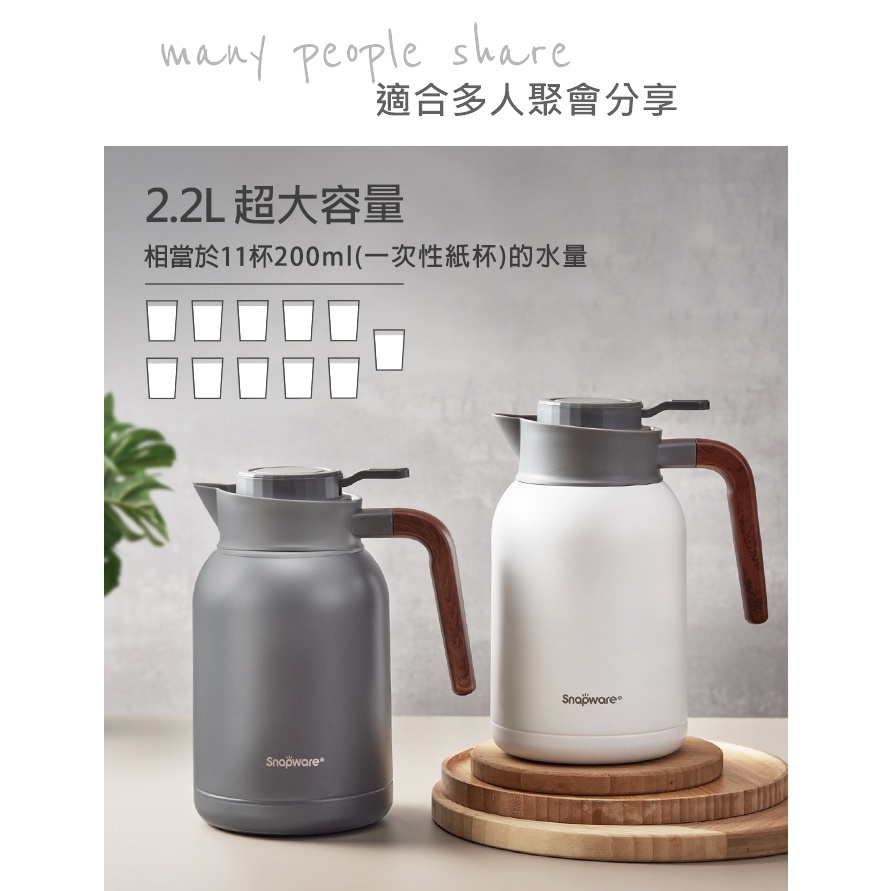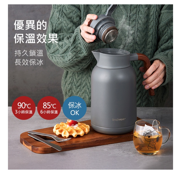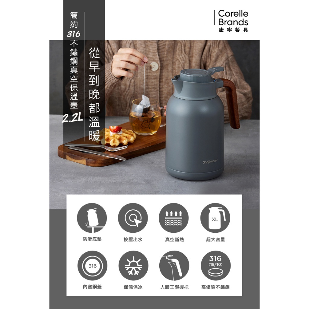 【康寧密扣Snapware】簡約316不鏽鋼真空保溫壺2200ml暮光灰|純淨白Jugs, Pitchers & AccessoriesBlack Hammer|美國康寧|掌廚|IdEa LifE餐廚