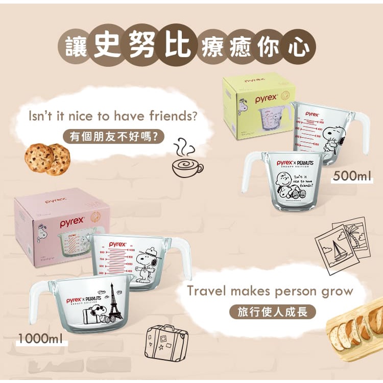 【康寧 Pyrex】史努比SNOOPY單耳量杯500ml/1000ml500ml|500ml*2|1000*2|1000ml|500ml+1000mlMeasuring Glasses & SpoonsBlack Hammer|美國康寧|掌廚|IdEa LifE餐廚