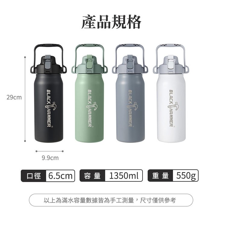 (配件賣場)BLACK HAMMER 探險者316不鏽鋼雙飲口保溫瓶1350ml灰|白|黑|綠|吸管Water Bottles & AccessoriesBlack Hammer|美國康寧|掌廚|IdEa LifE餐廚