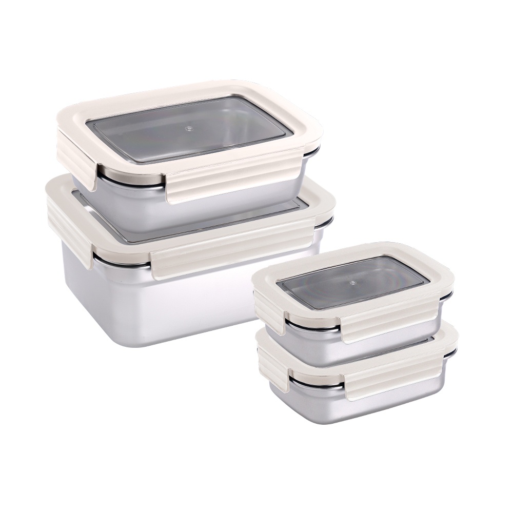 【掌廚可樂膳】可微波不鏽鋼可拆式透明窗保鮮便當盒/保鮮盒/超值4件組合(兩色可選)D01
