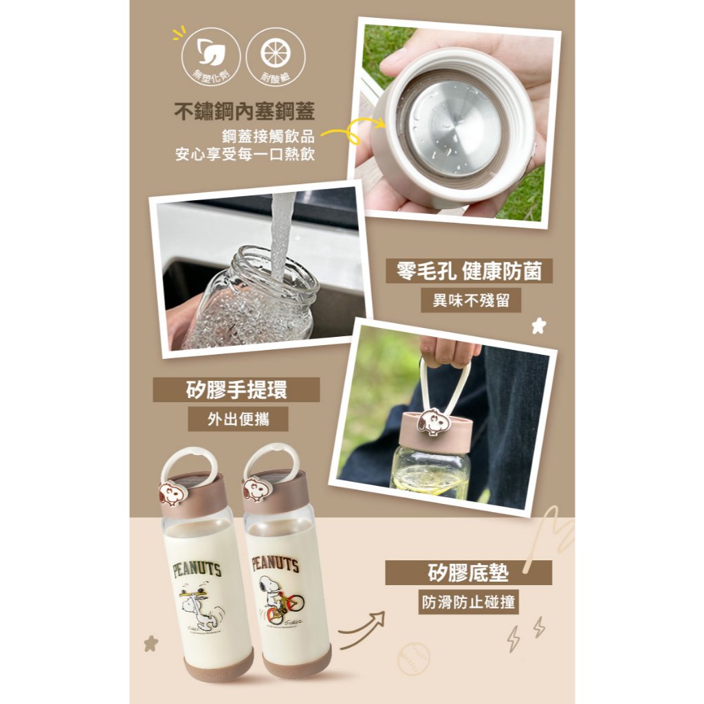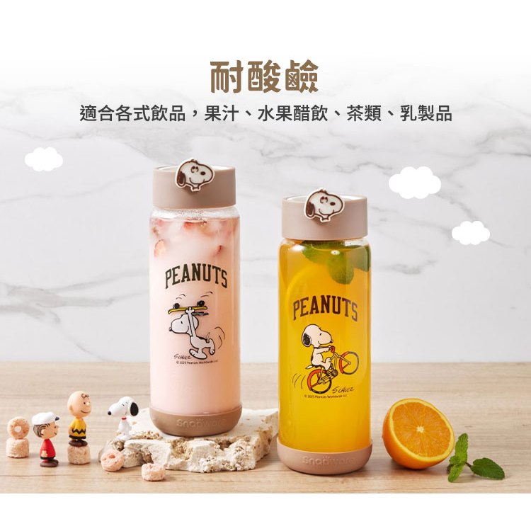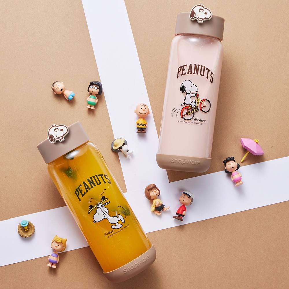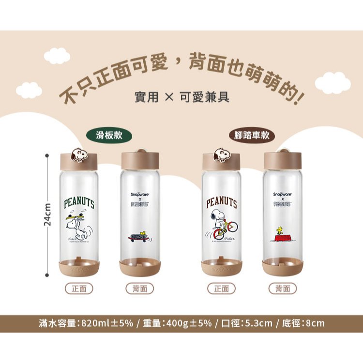 【康寧密扣Snapware】史努比運動手提隨行玻璃瓶820ml(2款可選)腳踏車款|滑板款Cups, Mugs & GlassesBlack Hammer|美國康寧|掌廚|IdEa LifE餐廚