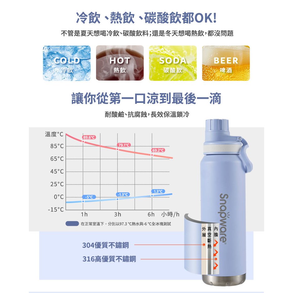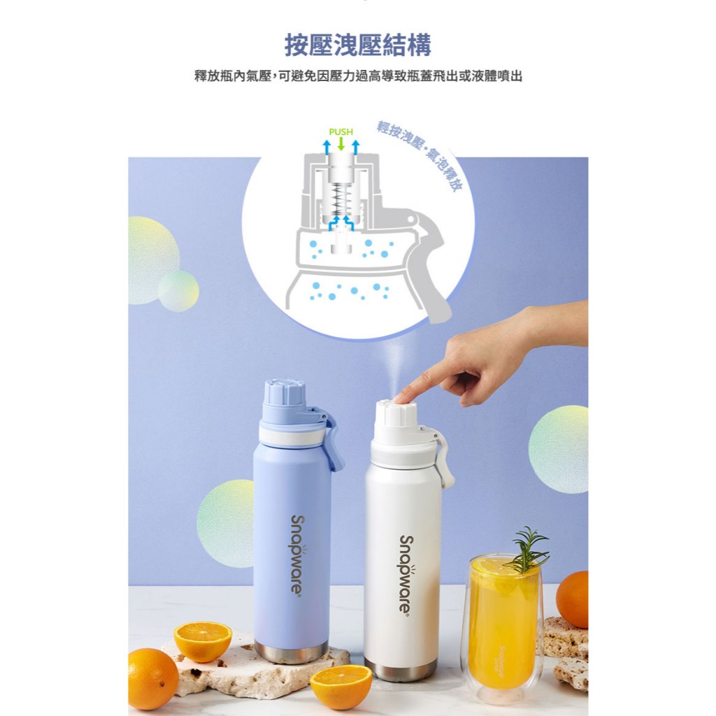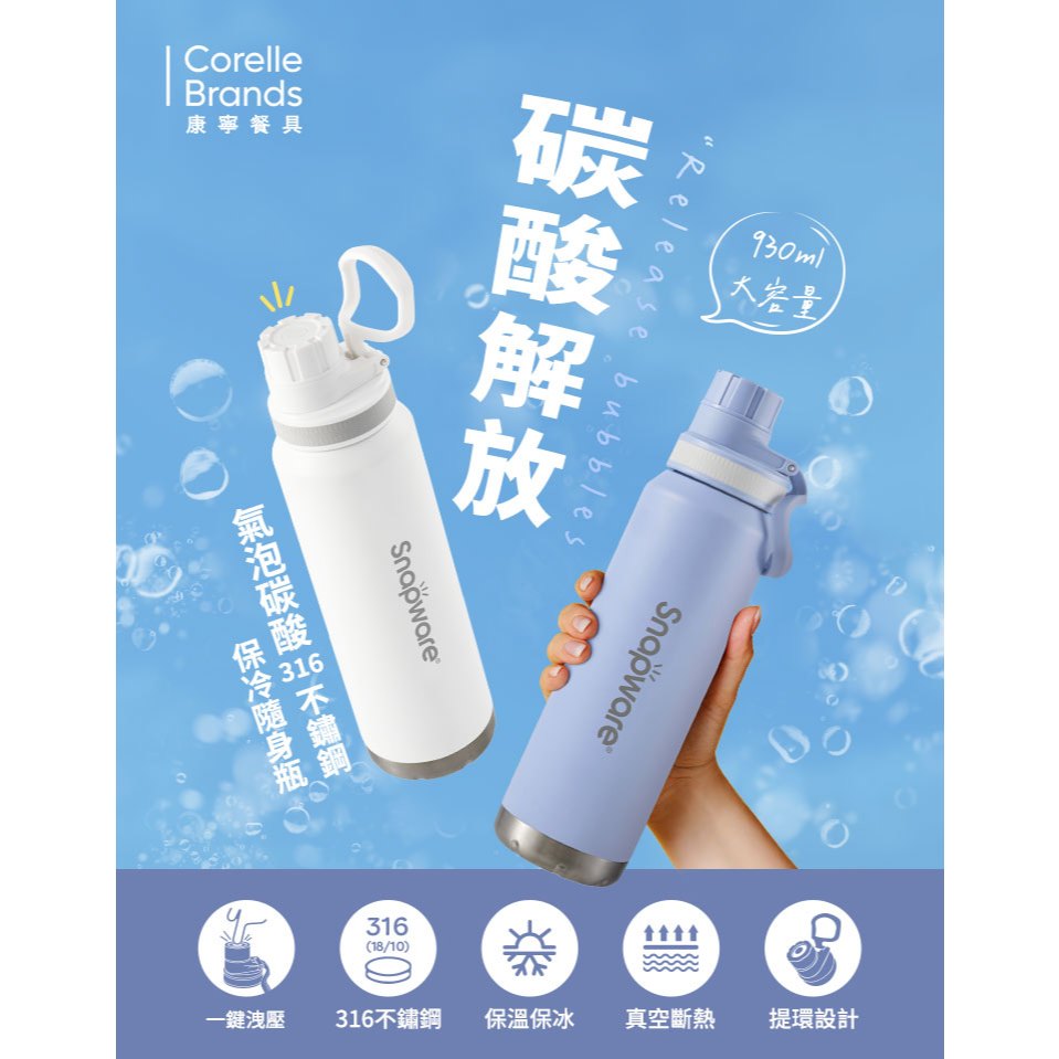 【Snapware康寧密扣】 氣泡碳酸316不鏽鋼保冷隨身瓶930ml(2色可選)白色|紫色Water Bottles & AccessoriesBlack Hammer|美國康寧|掌廚|IdEa LifE餐廚