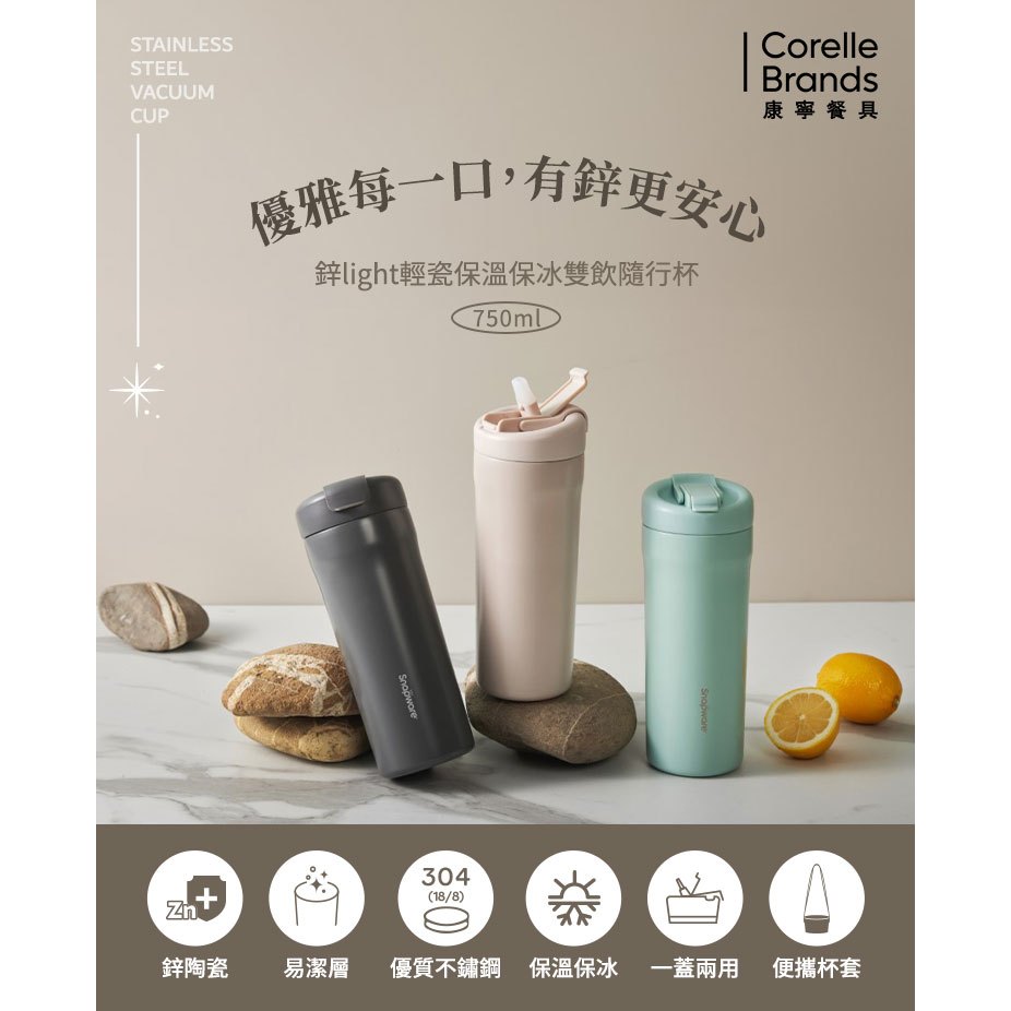 【康寧密扣Snapware】鋅light輕瓷保溫保冰隨行杯750ml/隨行杯/附杯袋暮光灰|薄荷綠|奶油杏Water Bottles & AccessoriesBlack Hammer|美國康寧|掌廚|IdEa LifE餐廚