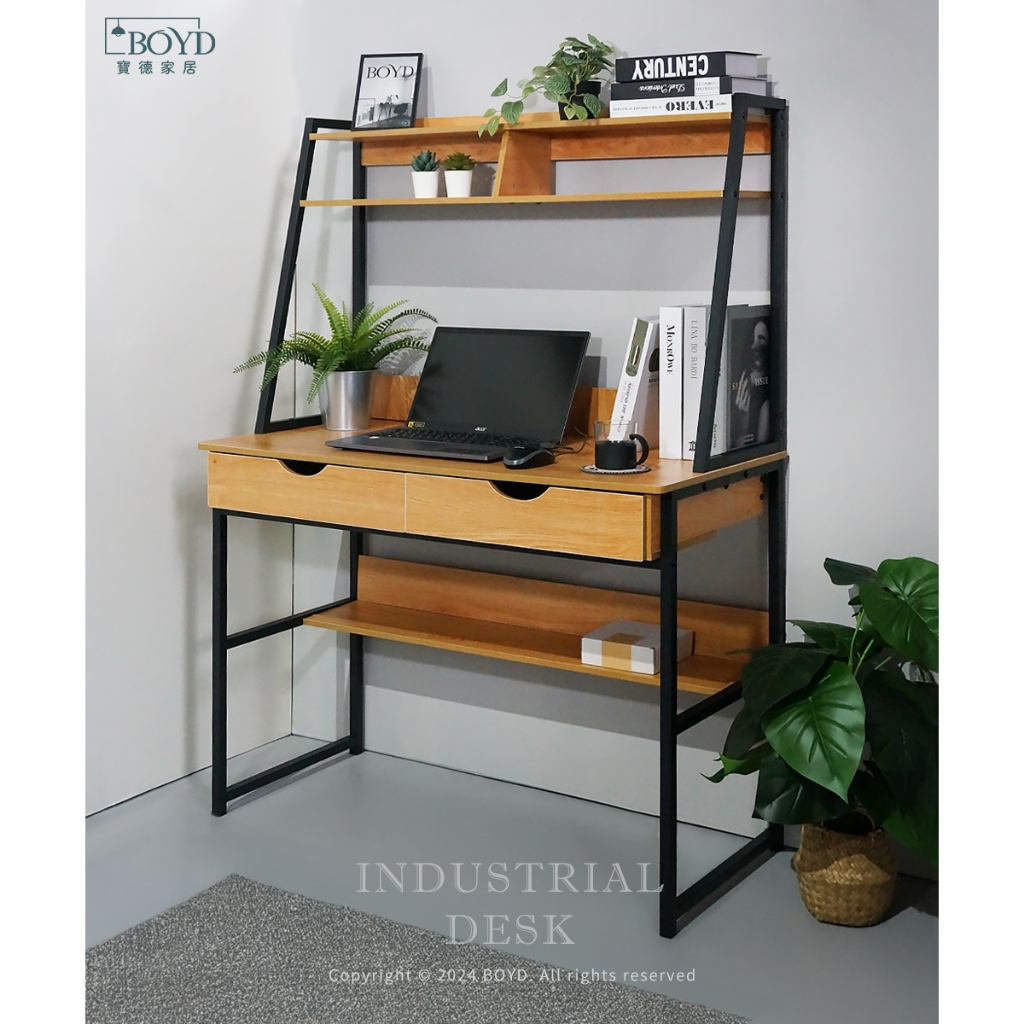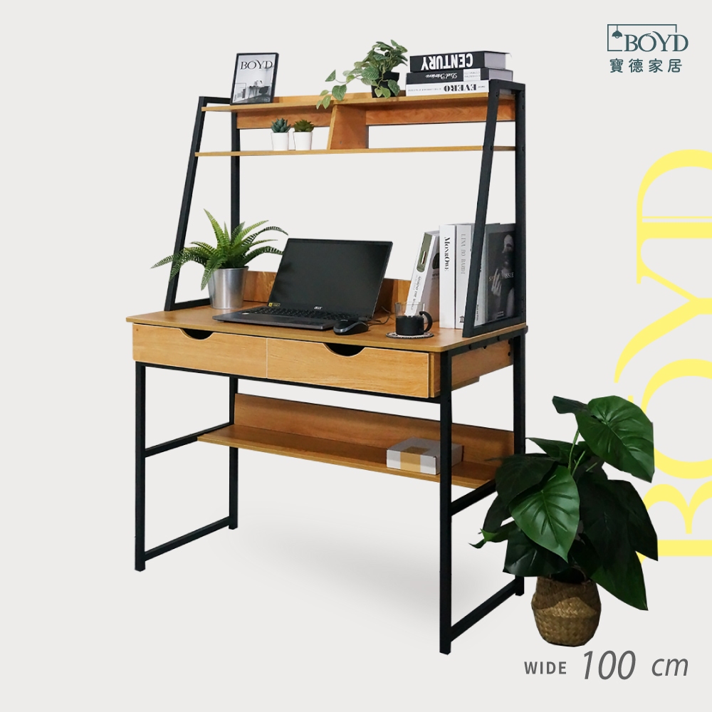 特價出清【寶德家居】工業風層架式電腦書桌 100公分 D00410|帶抽屜 層架書桌 原木色桌 台灣 現貨原木色(100公分)Desks & TablesBOYD 寶德家居