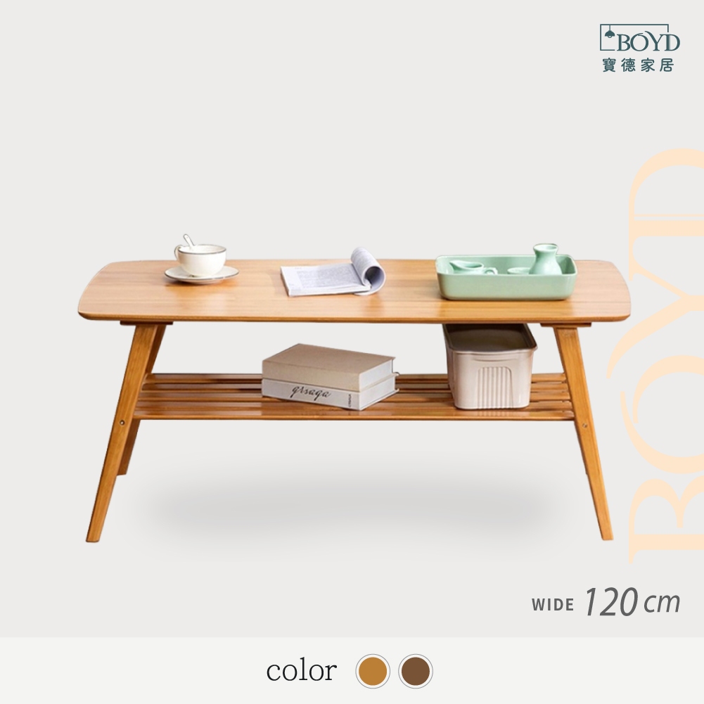特價出清【寶德家居】 楠竹雙層客廳茶几桌60x120cm D00054|楠竹 茶几 客廳桌 雙層茶几 收納茶几 台灣現貨原木色120cm|茶色120cmDesks & TablesBOYD 寶德家居