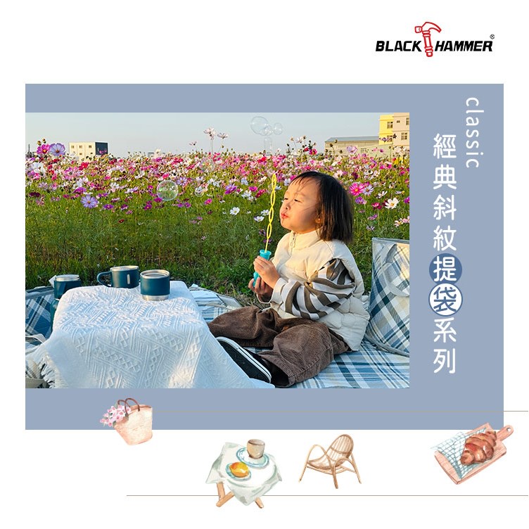 【Black HAMMER 官方直營】經典斜紋提袋系列 便當袋 水餃包 野餐袋 野餐墊摺疊野餐袋|提袋野餐墊|便當袋|水餃包|摺疊便當袋Camping & HikingBlack Hammer|美國康寧|掌廚|IdEa LifE餐廚