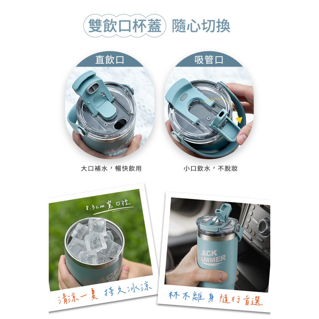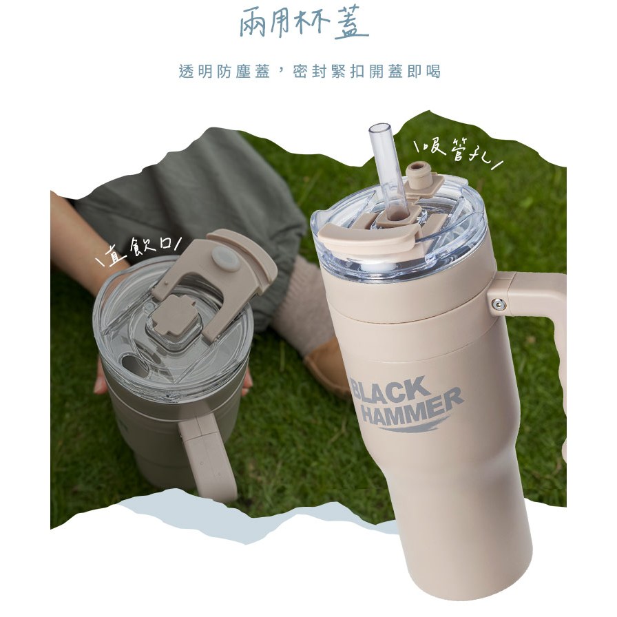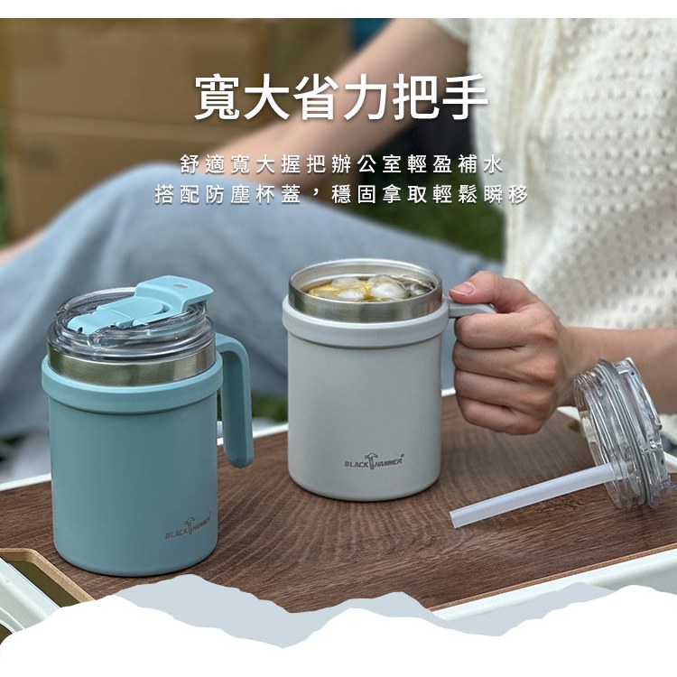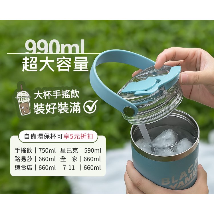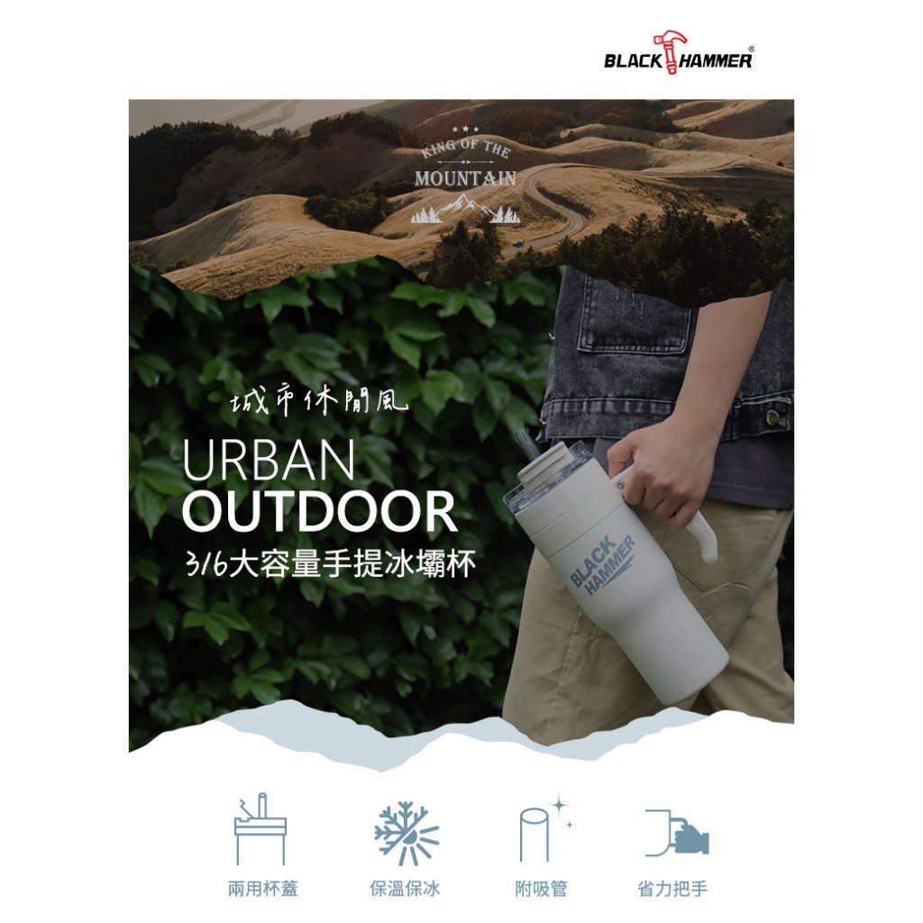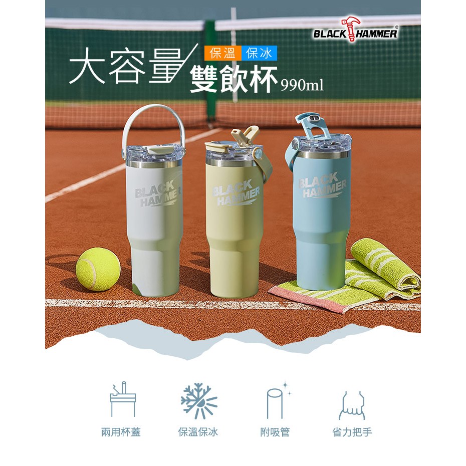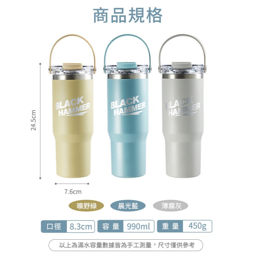 BLACK HAMMER 不鏽鋼保溫保冰提把杯990ml-藍晨光藍|曠野綠|薄霧灰Water Bottles & AccessoriesBlack Hammer|美國康寧|掌廚|IdEa LifE餐廚