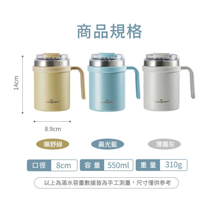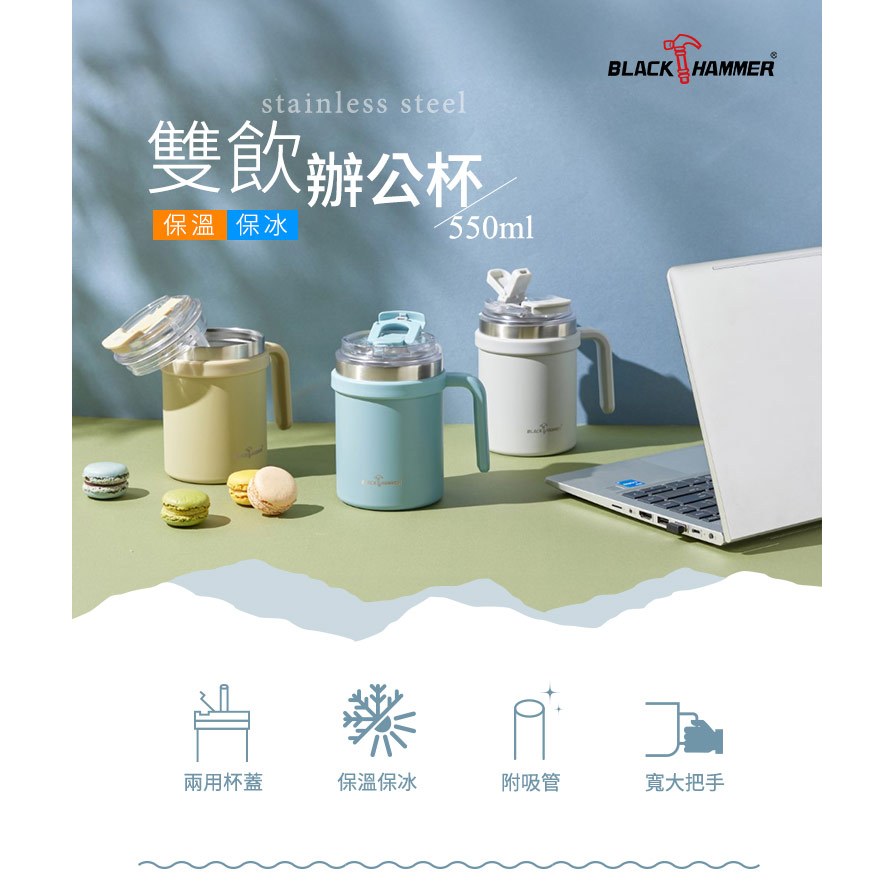 新品上市【Black HAMMER 官方直營】不鏽鋼保溫保冰雙飲辦公杯550ml晨光藍|曠野綠|薄霧灰Water Bottles & AccessoriesBlack Hammer|美國康寧|掌廚|IdEa LifE餐廚