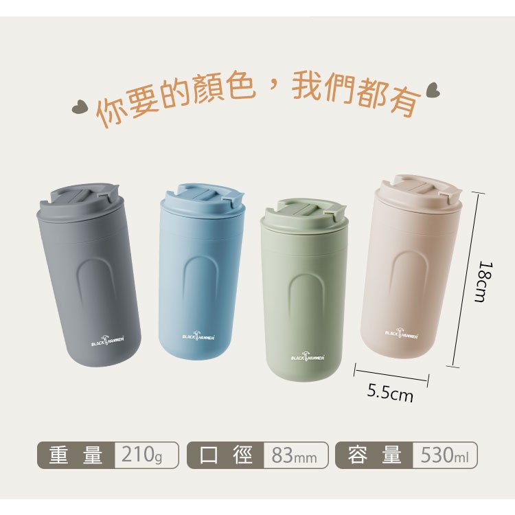 【Black HAMMER 官方直營】雙層隔熱超輕量隨行杯530ml杏色|綠色|藍色|灰色Water Bottles & AccessoriesBlack Hammer|美國康寧|掌廚|IdEa LifE餐廚