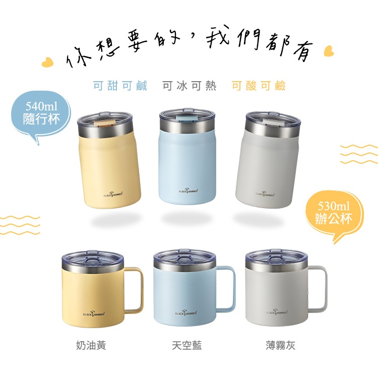 【Black HAMMER 官方直營】304不鏽鋼手把保冰保溫杯530ml/辦公杯藍+藍|藍+淺灰|藍|黃+黃|黃+藍|淺灰+淺灰|黃|淺灰|黃+淺灰Water Bottles & AccessoriesBlack Hammer|美國康寧|掌廚|IdEa LifE餐廚