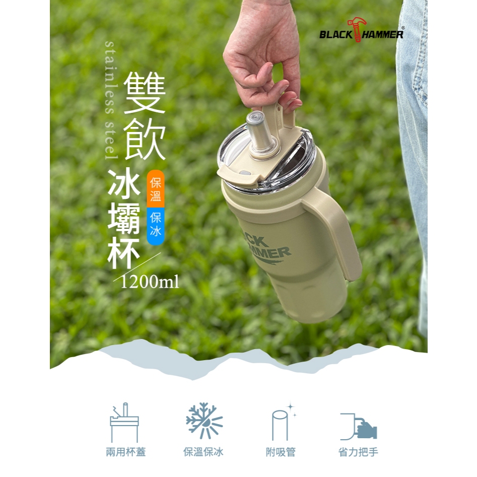 新品上市【Black HAMMER 官方直營】不鏽鋼保溫保冰手提冰壩杯1200ml-灰晨光藍|曠野綠|薄霧灰Water Bottles & AccessoriesBlack Hammer|美國康寧|掌廚|IdEa LifE餐廚