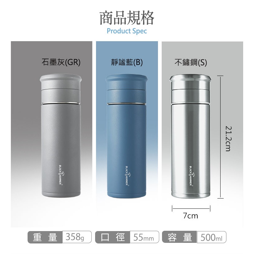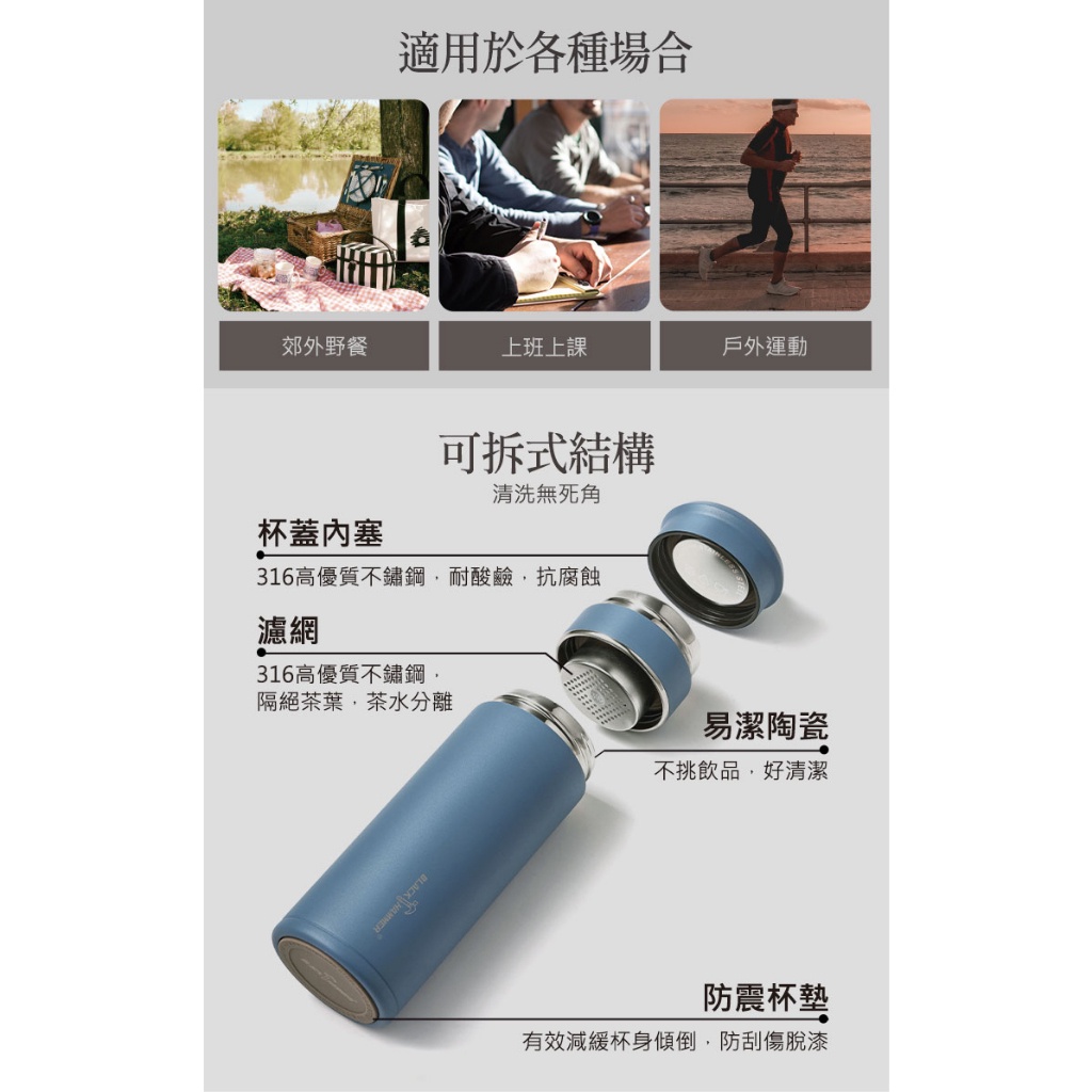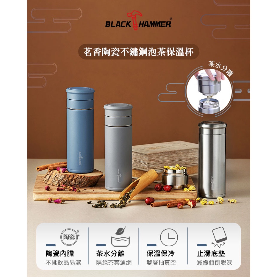 【Black HAMMER 官方直營】茗香陶瓷不鏽鋼泡茶保溫杯500ml 茶水分離 沖茶杯/旅遊露營不鏽鋼色+灰色|藍色|灰色*2|藍色+不鏽鋼色|灰色|藍色*2|不鏽鋼色*2|不鏽鋼色|藍色+灰色Water Bottles & AccessoriesBlack Hammer|美國康寧|掌廚|IdEa LifE餐廚